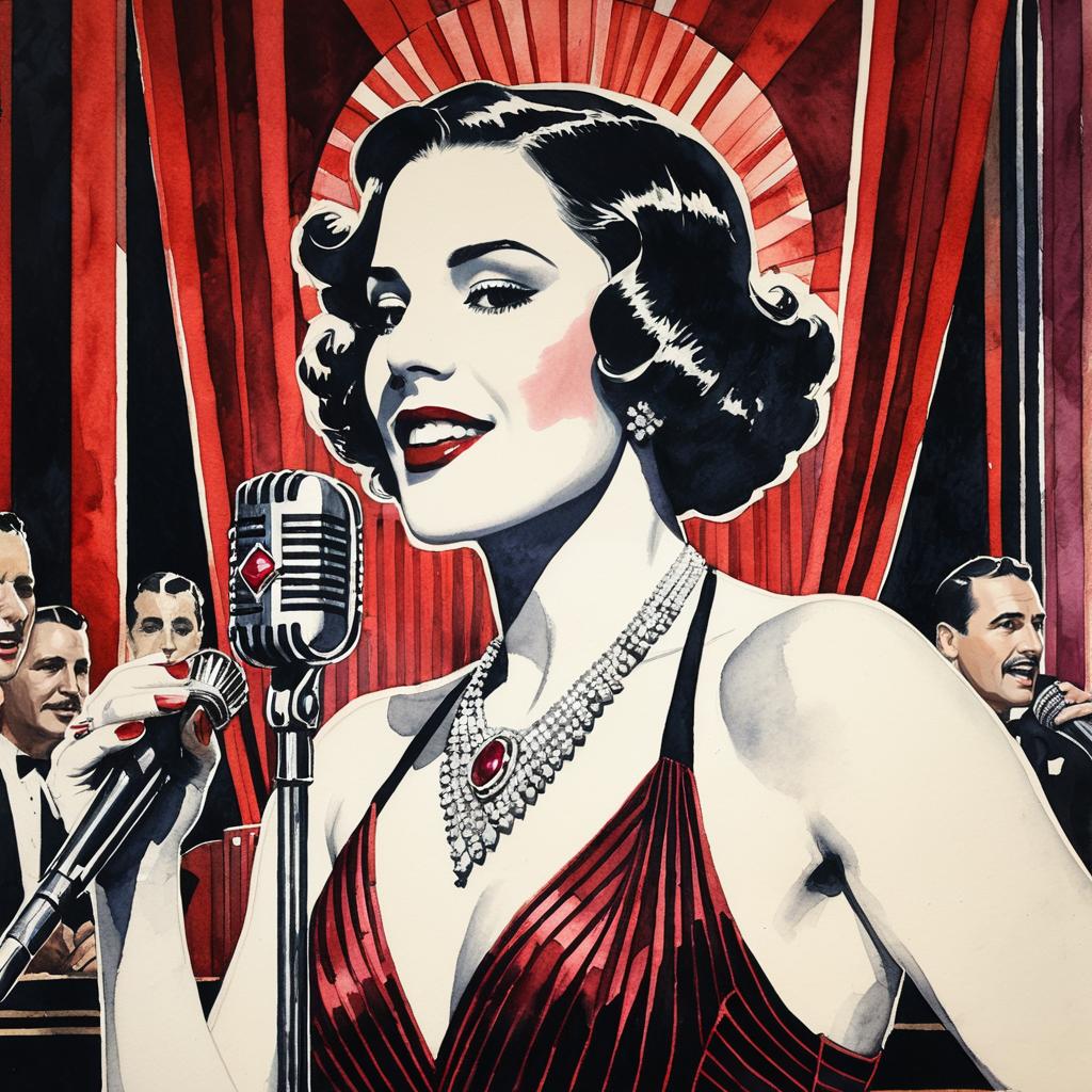 Hyper-detailed watercolor painting of a 1920s flapper girl in high quality with monochrome shades.