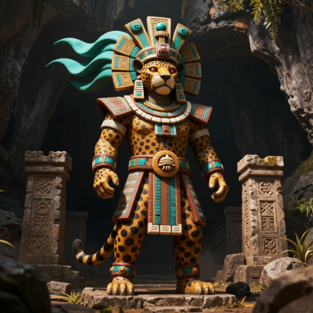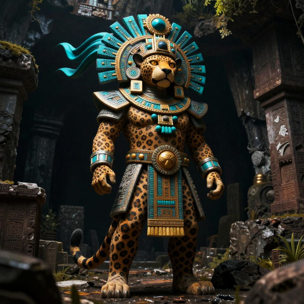 Mesoamerican Jaguar Lord of Cenote Ruins