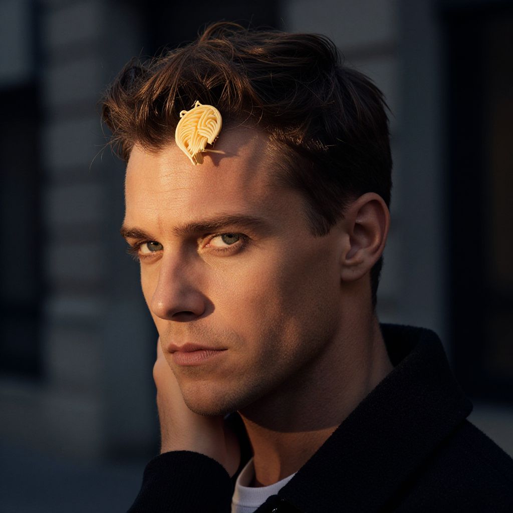 Textured Caesar Cut on a fit European man, cinematic lighting, high contrast, urban lifestyle, professional hair styling