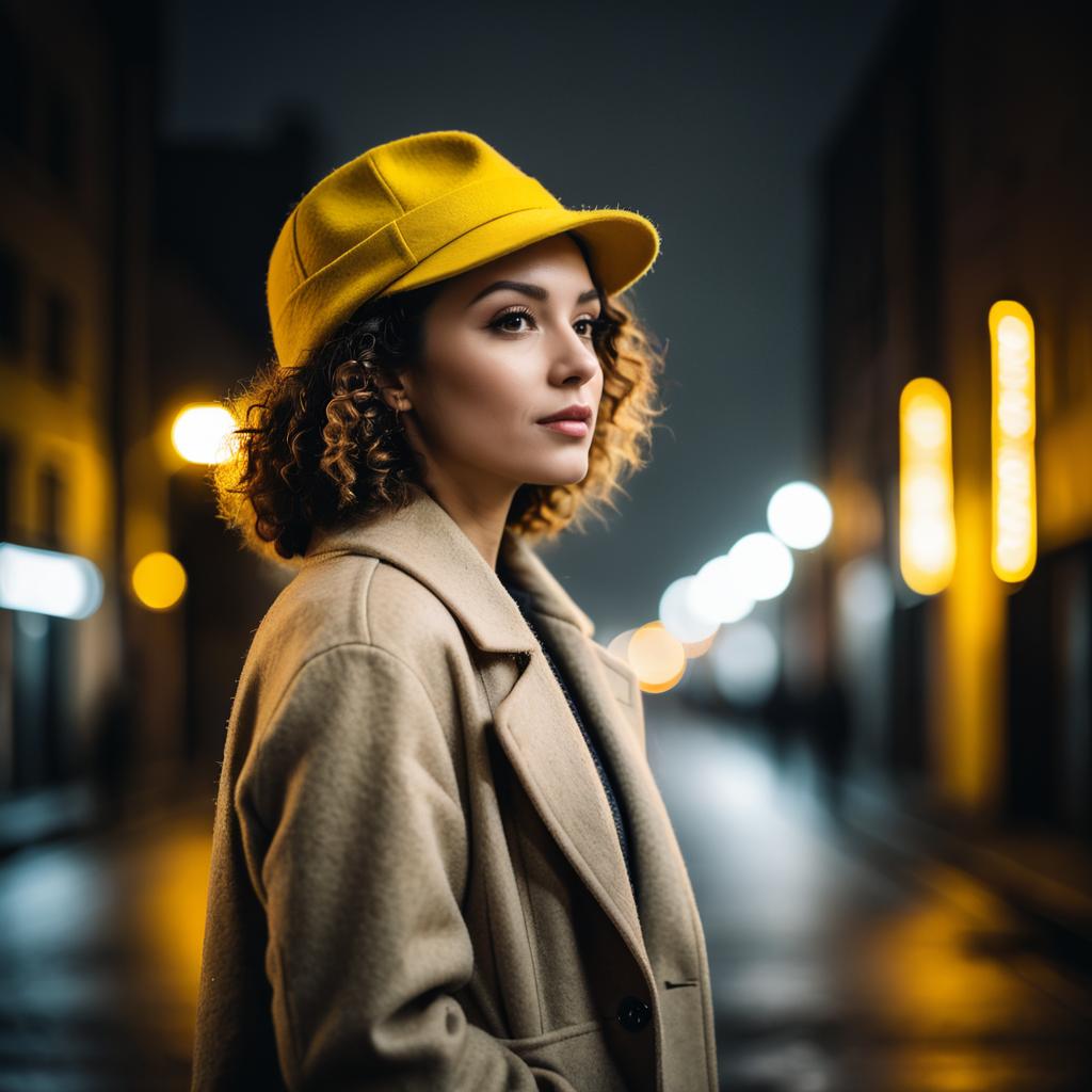 Ultra-detailed Hasselblad photo of a stunning silver-haired woman sitting and drinking mint tea at a cozy neon-lit market, large bokeh elements, perfect lighting, soft focus, high contrast, 8k resolution, 28mm lens