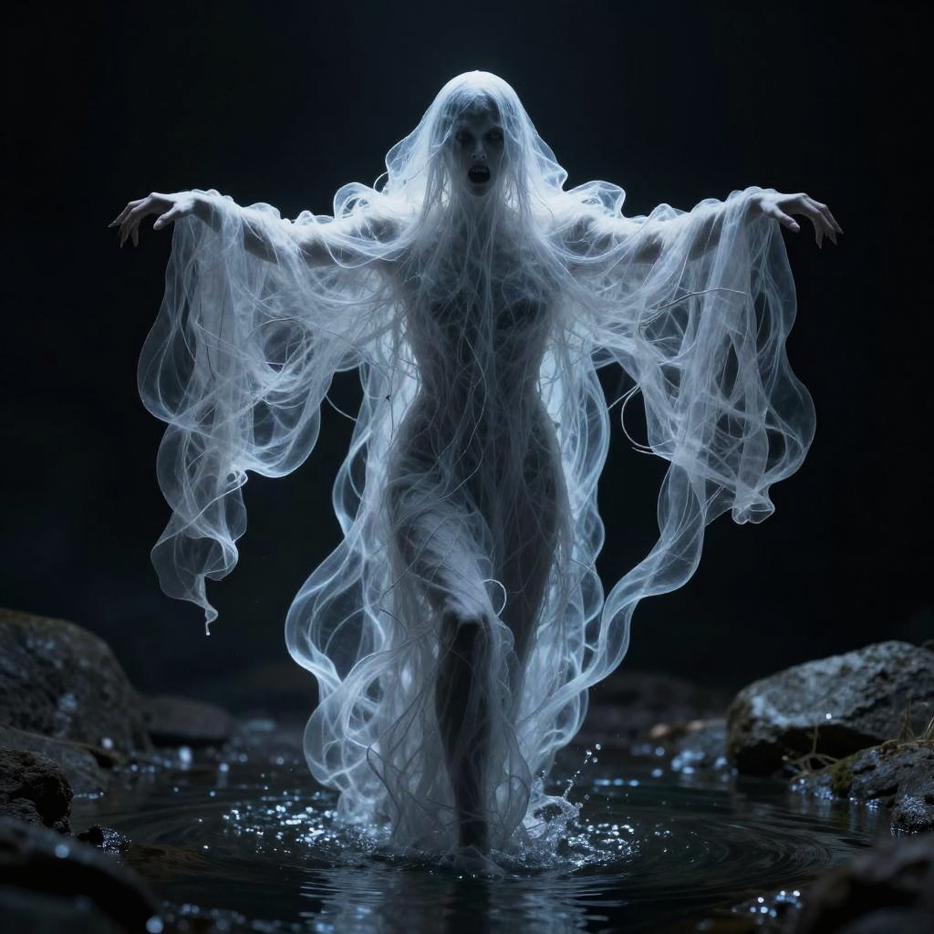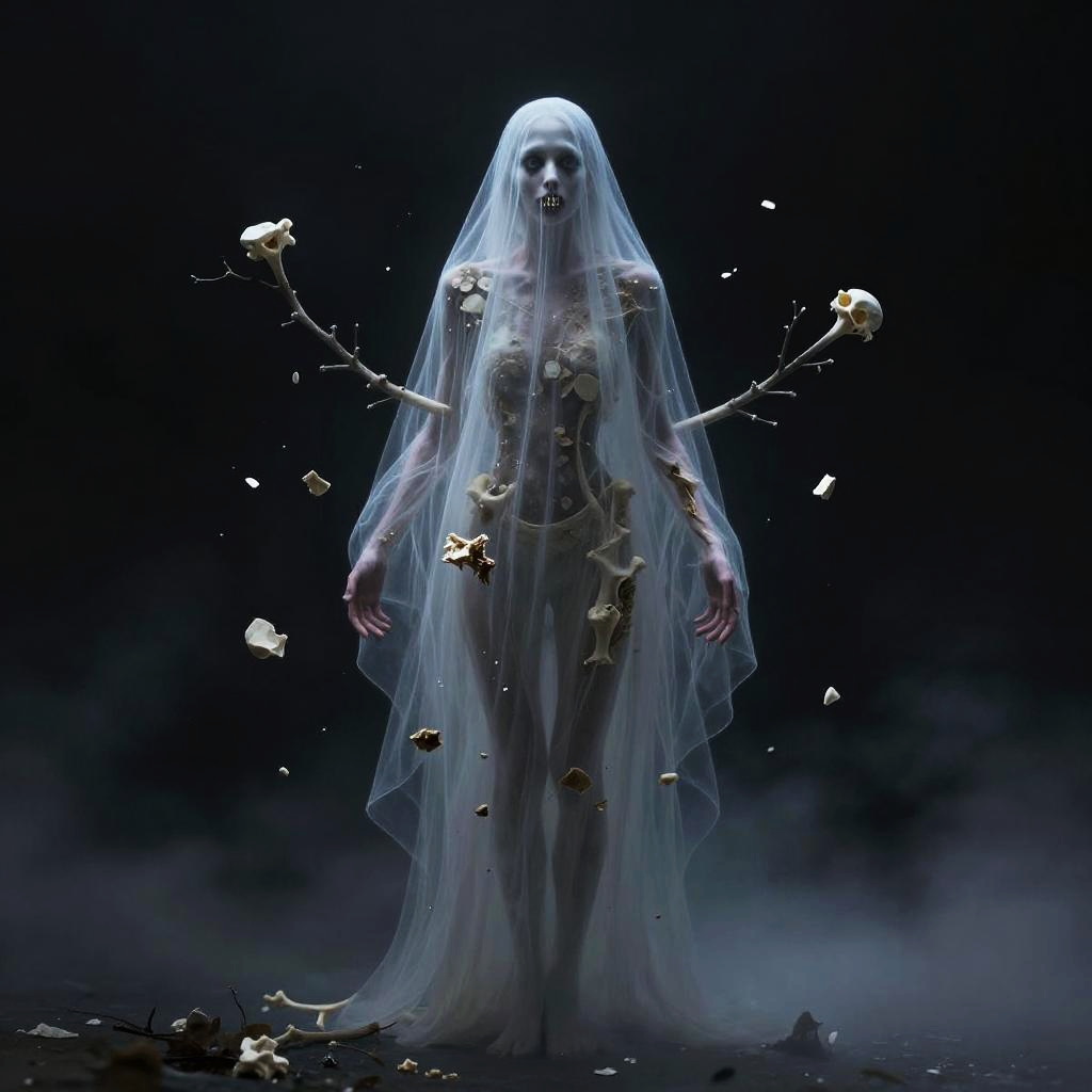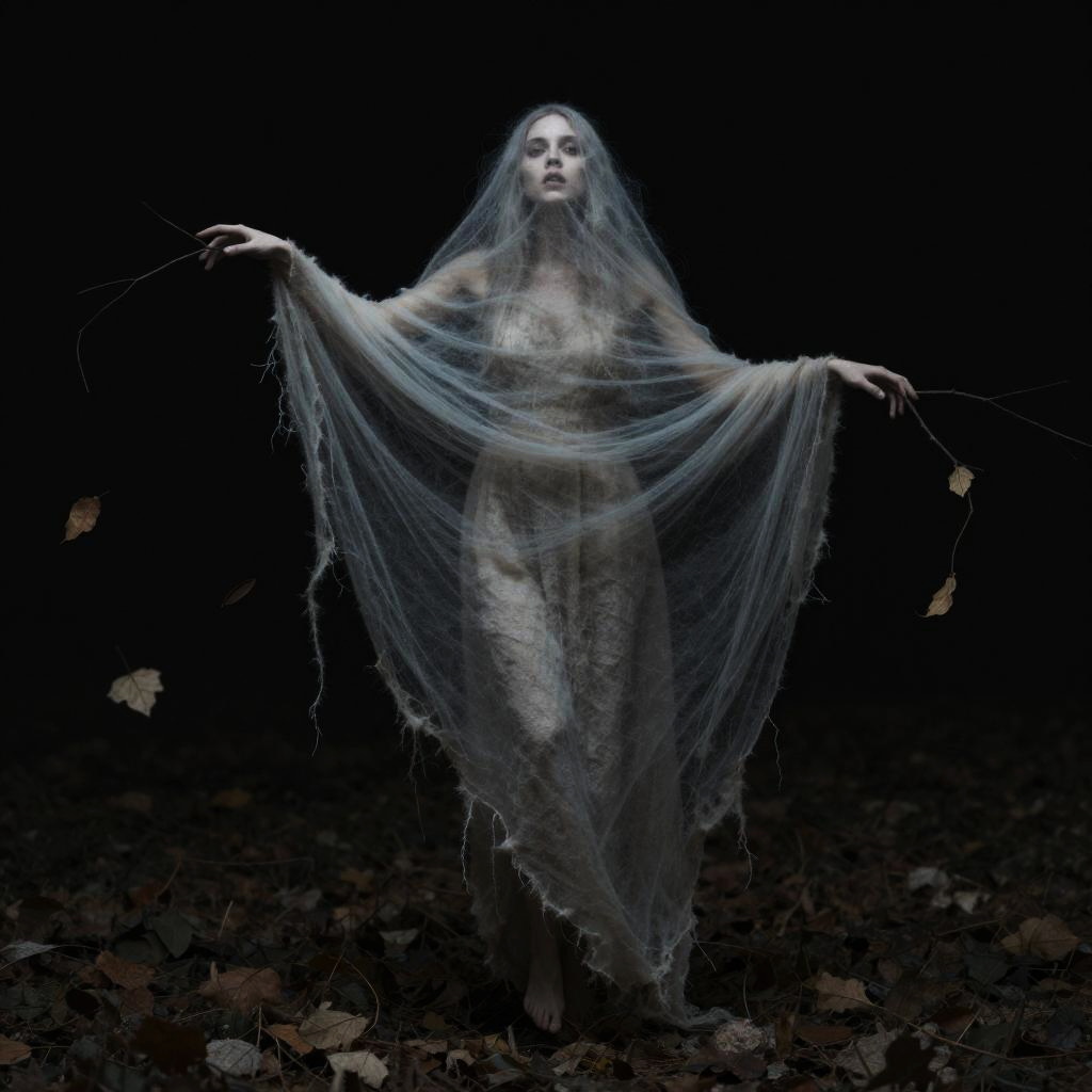 Wispy Revenant Amid Forlorn Leaves