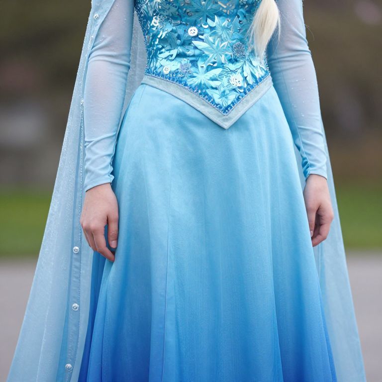 Elsa Inspired Outfit, a close up of a person in a blue dress with a cape