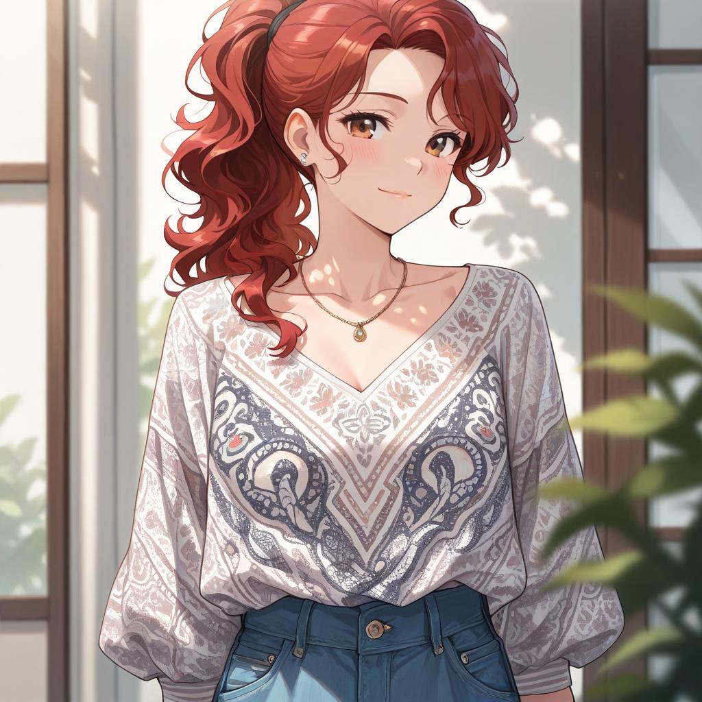 Happy Barista in Cafe with Curly Hair