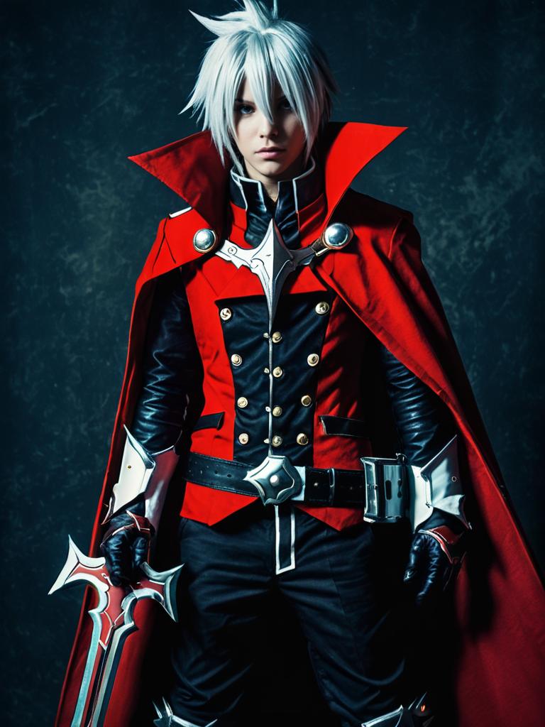 Man cosplay. Wearing Vash the Stampede costume. Realistic photo. Dressed as Vash the Stampede --sref 1400