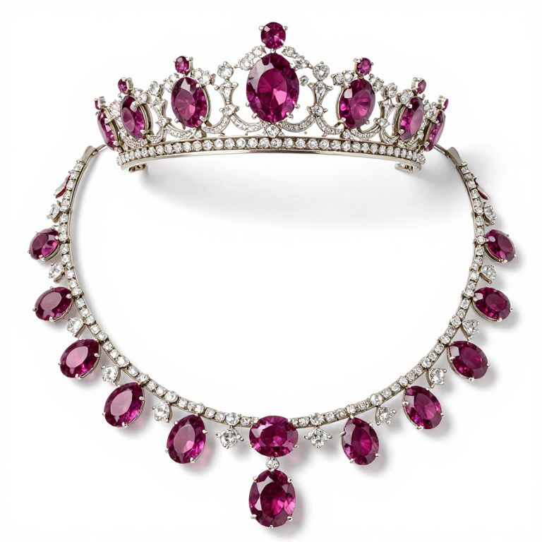 Keppel Tiara, United Kingdom (early 20th c.; synthetic rubies, diamonds). Gift of King Edward VII to his favorite mistress Alice Keppel, the great-grandmother of the Duchess of Cornwall. The duchess has worn the tiara off the frame as a necklace.
