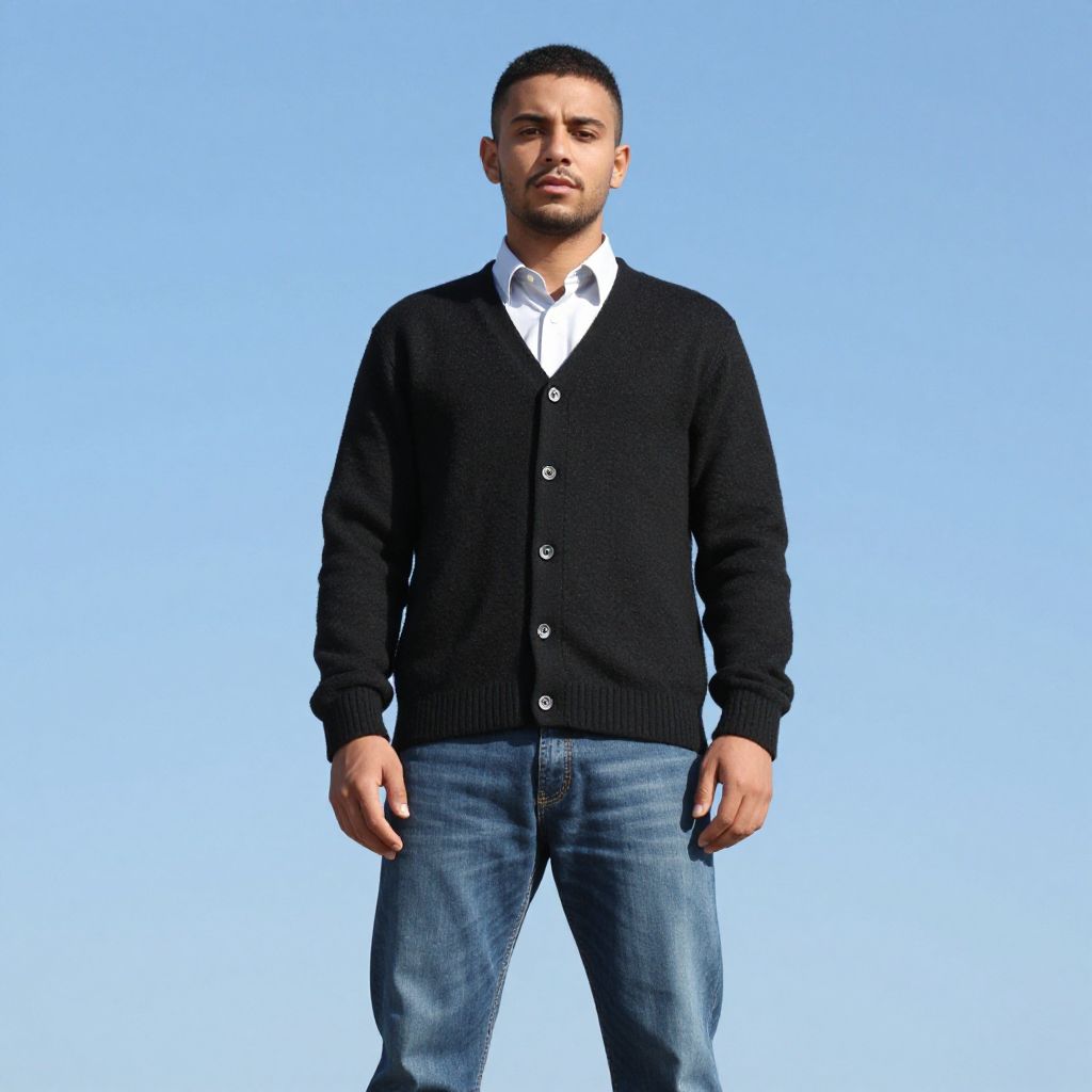 Solo Male in Black Cardigan Outdoors