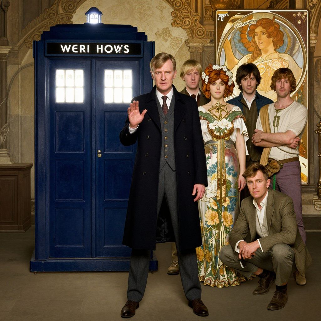 The fifth doctor standing next to the tardis, portrait by stanley artgerm lau, greg rutkowski, thomas kindkade, alphonse mucha, loish, norman rockwell