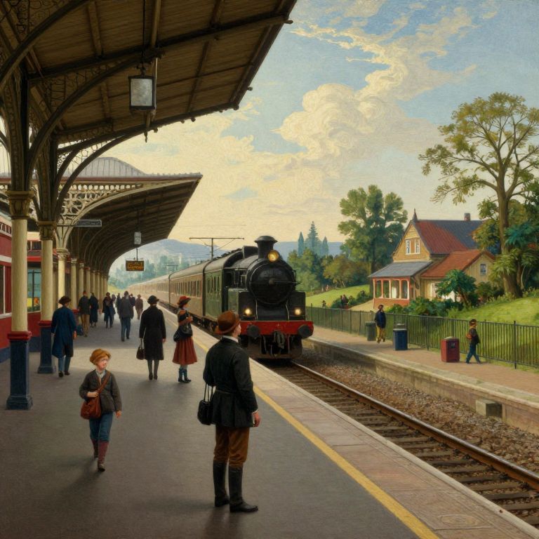Surreal Victorian Train Station Scene