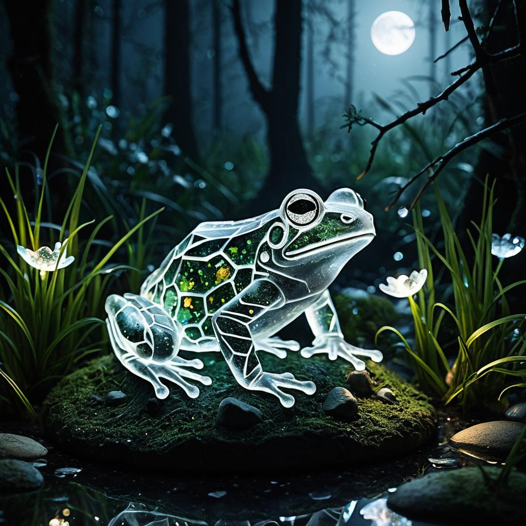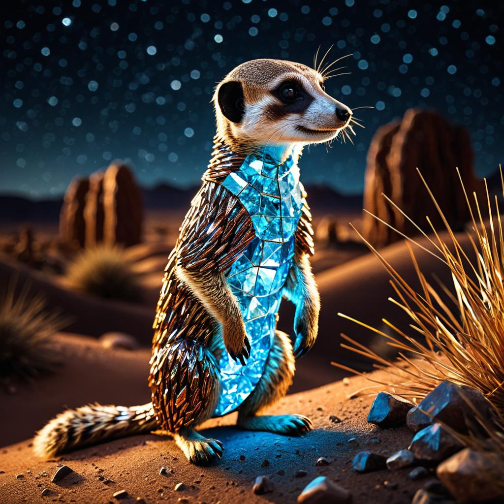 A whimsical vengeful crystalline phoenix crafted from various luminous fissured stones and glowing embers. The scene is set in a dark cavern with mystical glowing fungi at nighttime, illuminated by enchanting lights that enhance the photorealistic details in ultra-high quality.