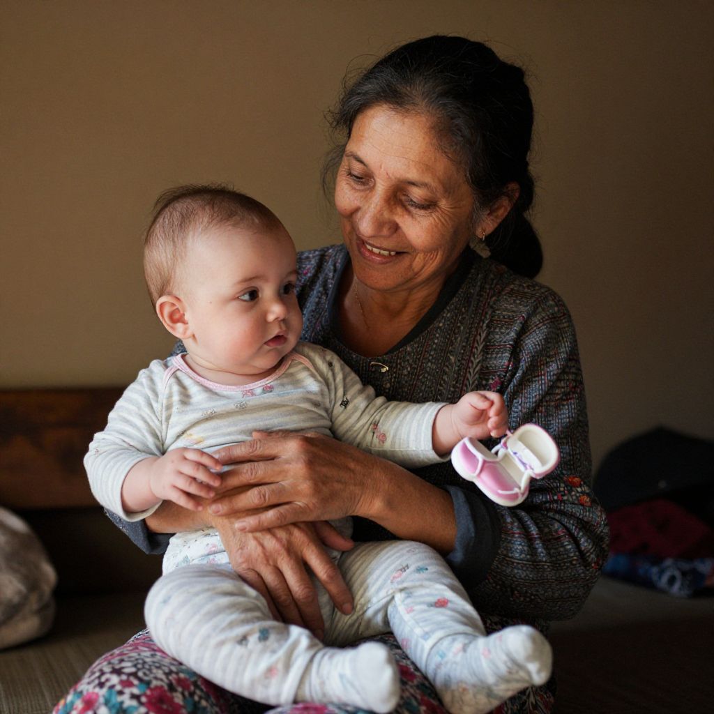 Elderly Woman Holding Baby