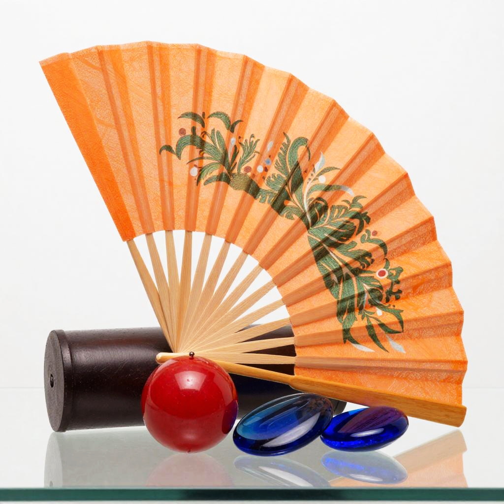 Orange Paper Fan with Decorative Objects