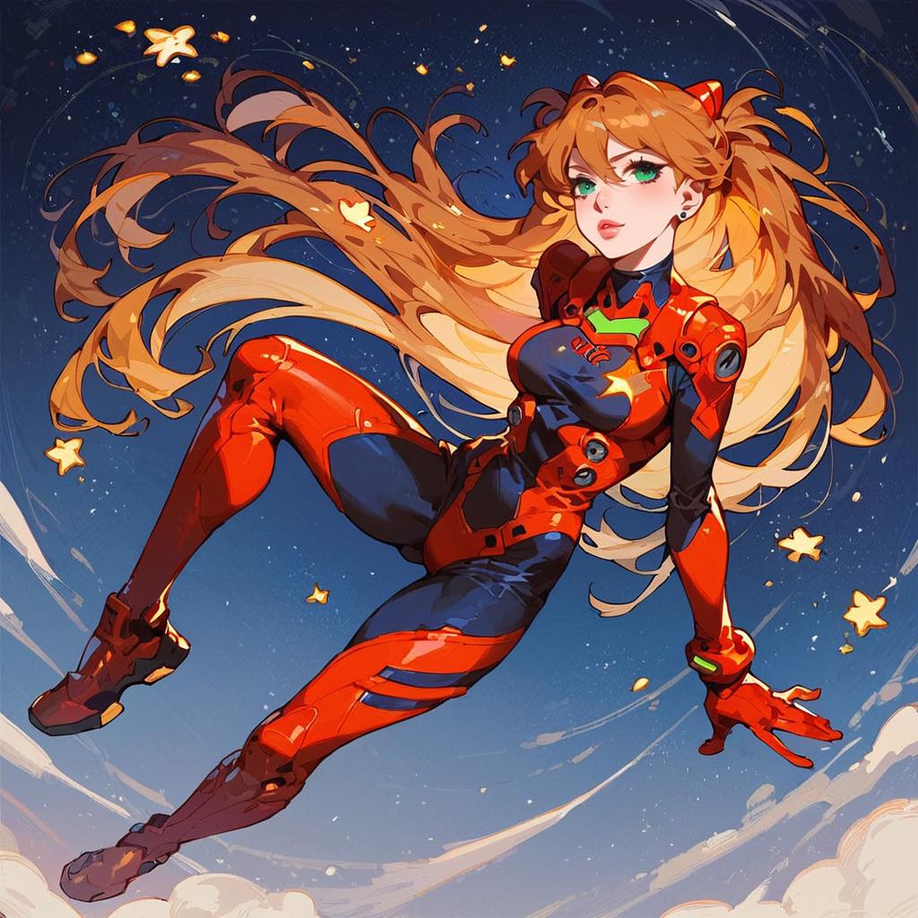 Anime Girl in Red Plugsuit Against Starry Sky