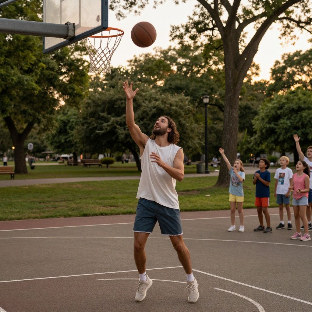 Jesus Playing Basketball in Peaceful Park