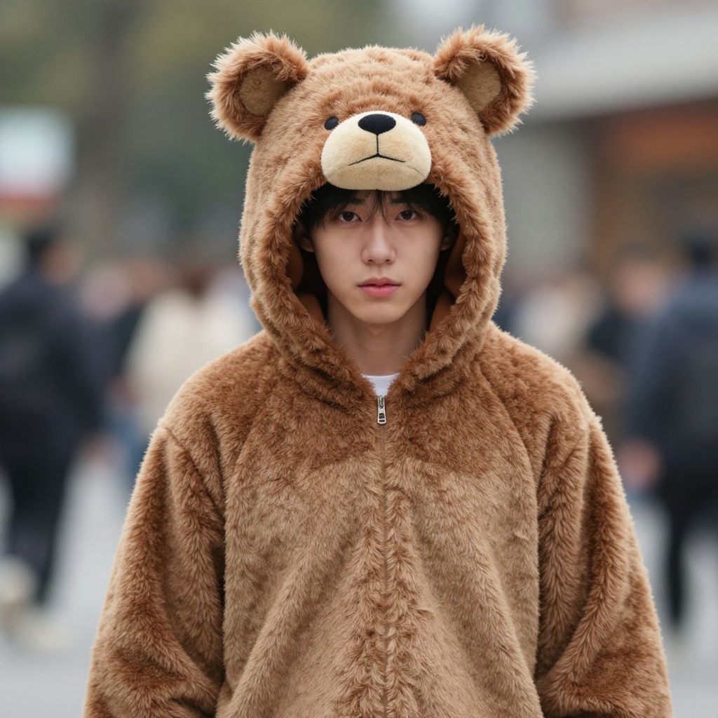 Blue lobster halloween, 1boy, male focus, solo, blurry background, smile, looking at viewer, blurry, cosplay, outdoors, animal costume, costume
