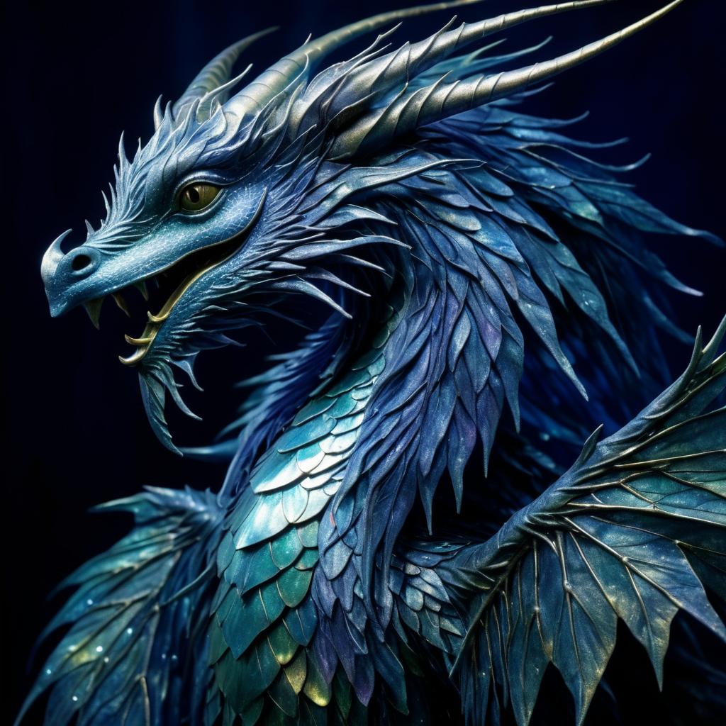 Isolated mythical creature in high detail with shimmering scales effects by Brian Froud, Jim Henson.