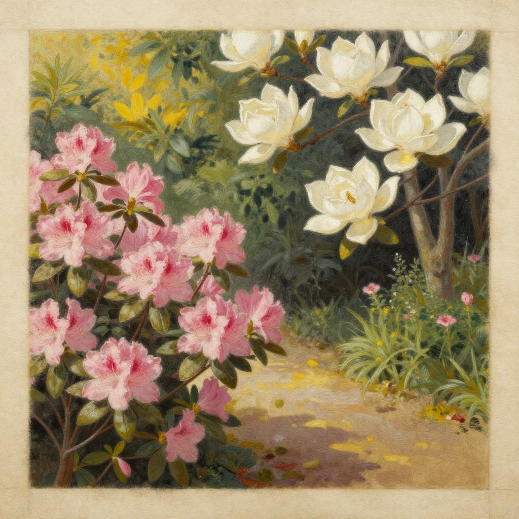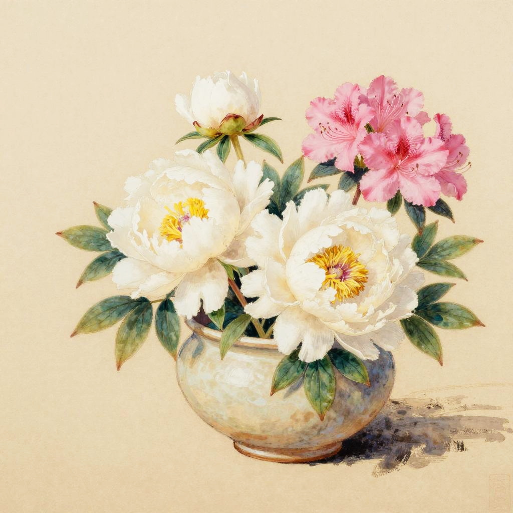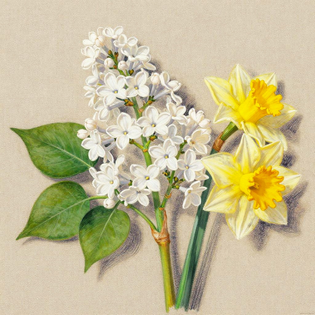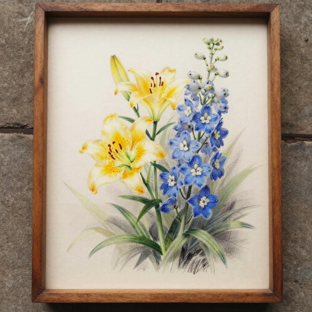 Botanical Painting with Daisies and Marigolds on Window Ledge