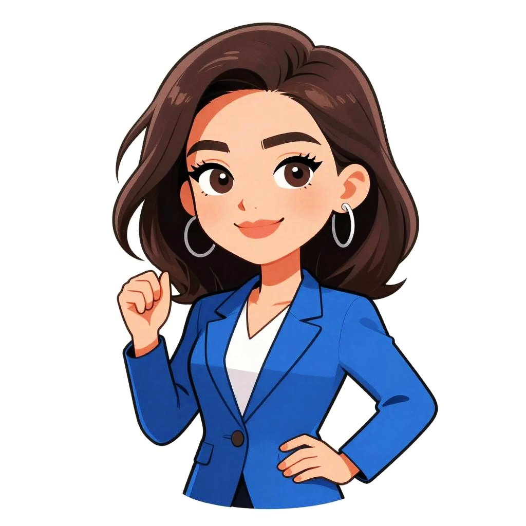 This is a flat minimal digital portrait of a South Asian adult woman with straight mid-length dark brown hair, with a subtle smile, bright attentive eyes, and a faint blush. The subject wears a simple light top with clean, slightly angular seams. Minimalist, sketch-like linework, soft edges, limited palette; the background is soft blush pink with simple white polka dots. Clean composition, gentle light, balanced negative space, modern editorial illustration.