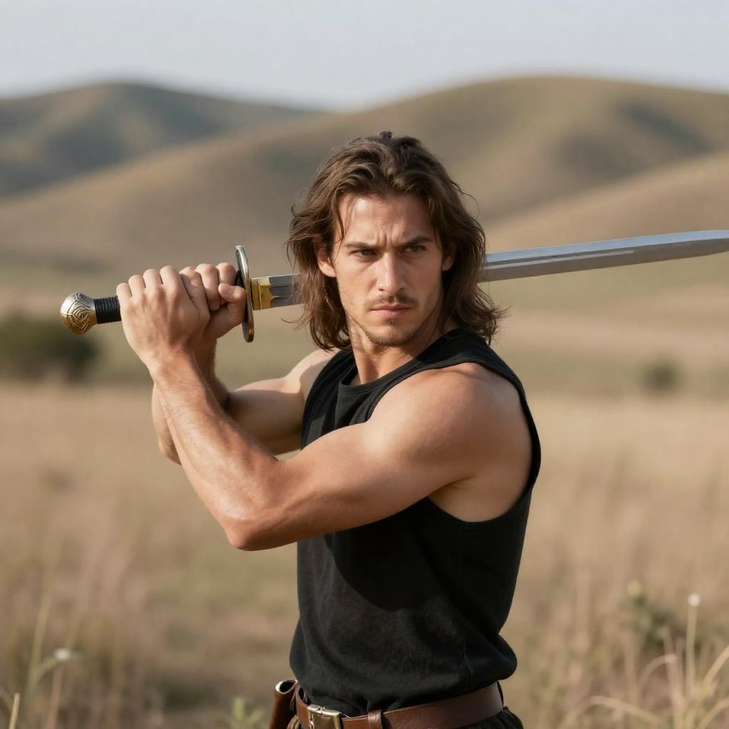 Rugged Warrior Aiming Under Blue Sky