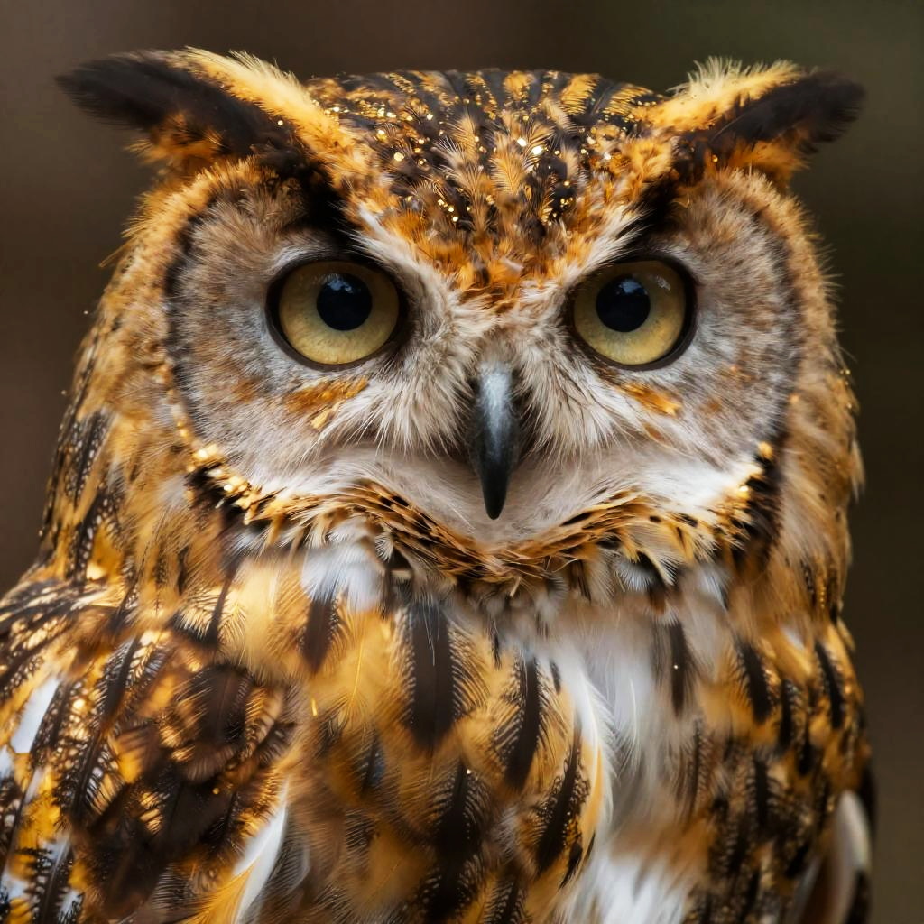 Ultra-cute bashful baby owl with soft downy feather crest, layered bob with golden speck tips, warm morning sunlight, and gentle whimsical vibes.