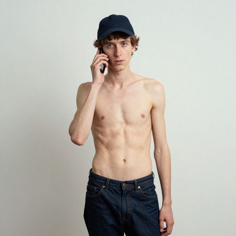 "Zdzislaw Beksinski hombre alto delgado como ando hablando por teléfono con una chaqueta de colores y un pantalón quitado con una gorra,"