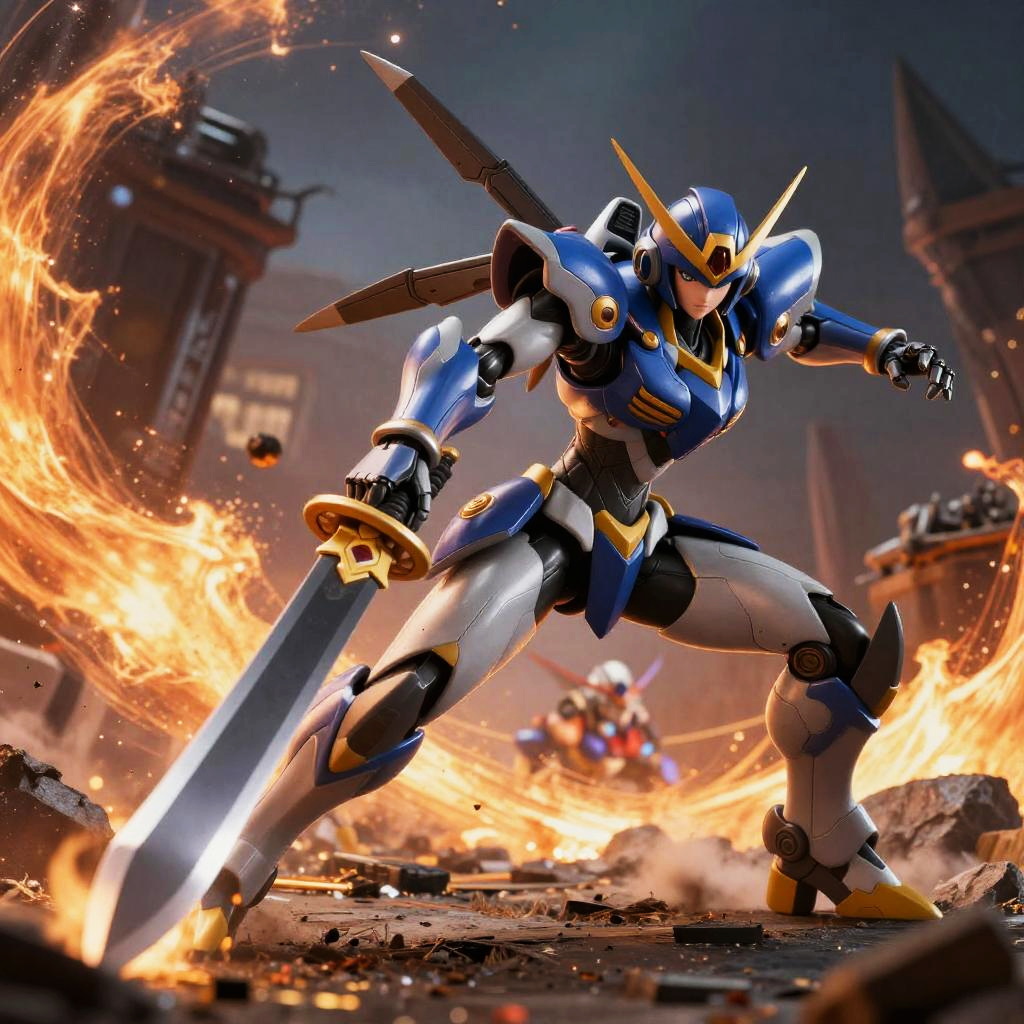 (blind box toy style:1.5)(dramatic, gritty, intense:1.4), masterpiece, best quality, 32k uhd, insane details, intricate details, hyperdetailed, hyper quality, high detail, ultra detailed, Masterpiece, super vista, Epic CG masterpiece, Mari Illustrious Makinami, hdr, dtm, full ha, in the style of mecha anime, like a god The dancing long knife charging forward battlefield, the burst meteor, the fierce battle of fighting with his life, 8K, ultra detailed graphic tension, dynamic poses, stunning colors, 3D rendering, surrealism, cinematic lighting effects, realism, 00 renderer, super realistic, full - body photos, super wide Angle, HD, 1girl, (full body:1.7