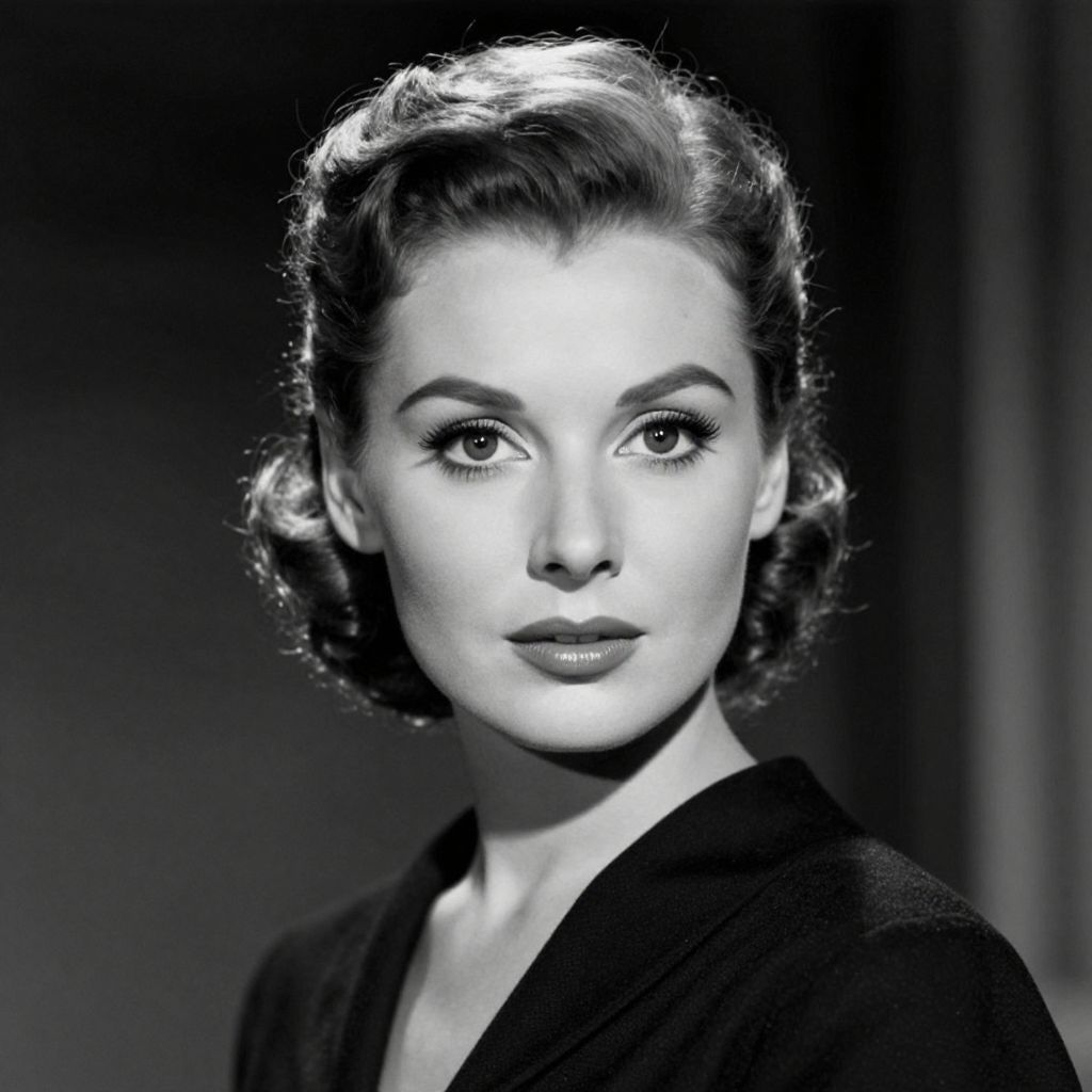 A vintage-inspired black-and-white digital art print capturing a classic 1950s portrait of a woman with styled hair and elegant attire, reminiscent of the cinematic aesthetic seen in \"Dial M For Murder\" (1954), featuring Grace Kelly, rendered with dramatic lighting and high-definition detail.