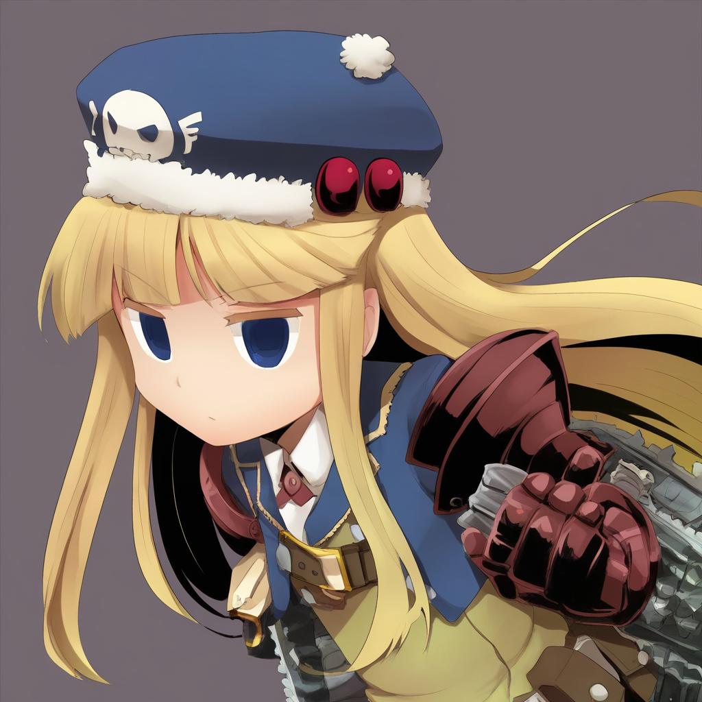 Gunner 2 (sekaiju), sekaiju no meikyuu, 1girl, blue eyes, blonde hair, long hair, hat, by artist marimo danshaku, leet
