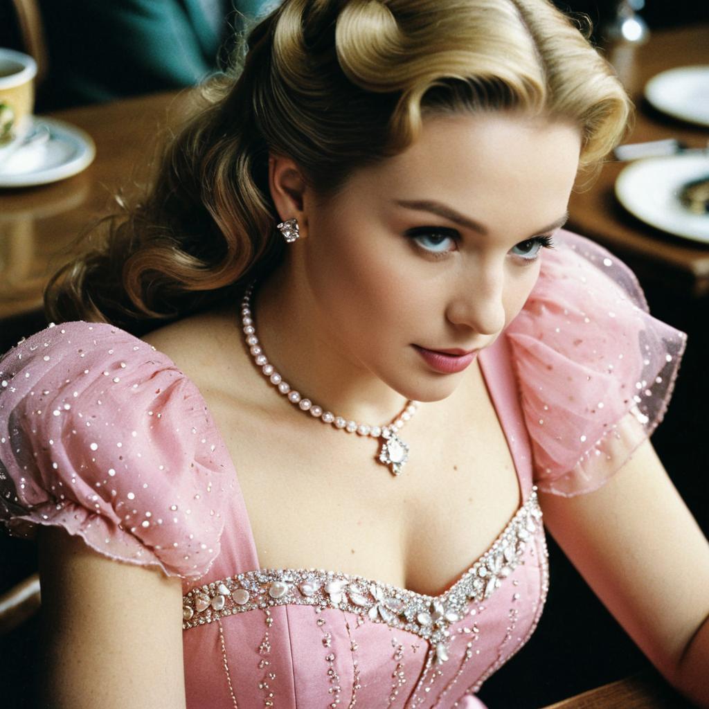 Glinda Girl, a close up of a woman in a pink dress with a tiable