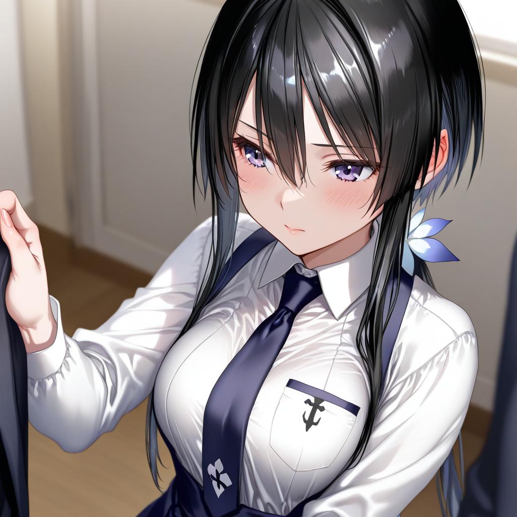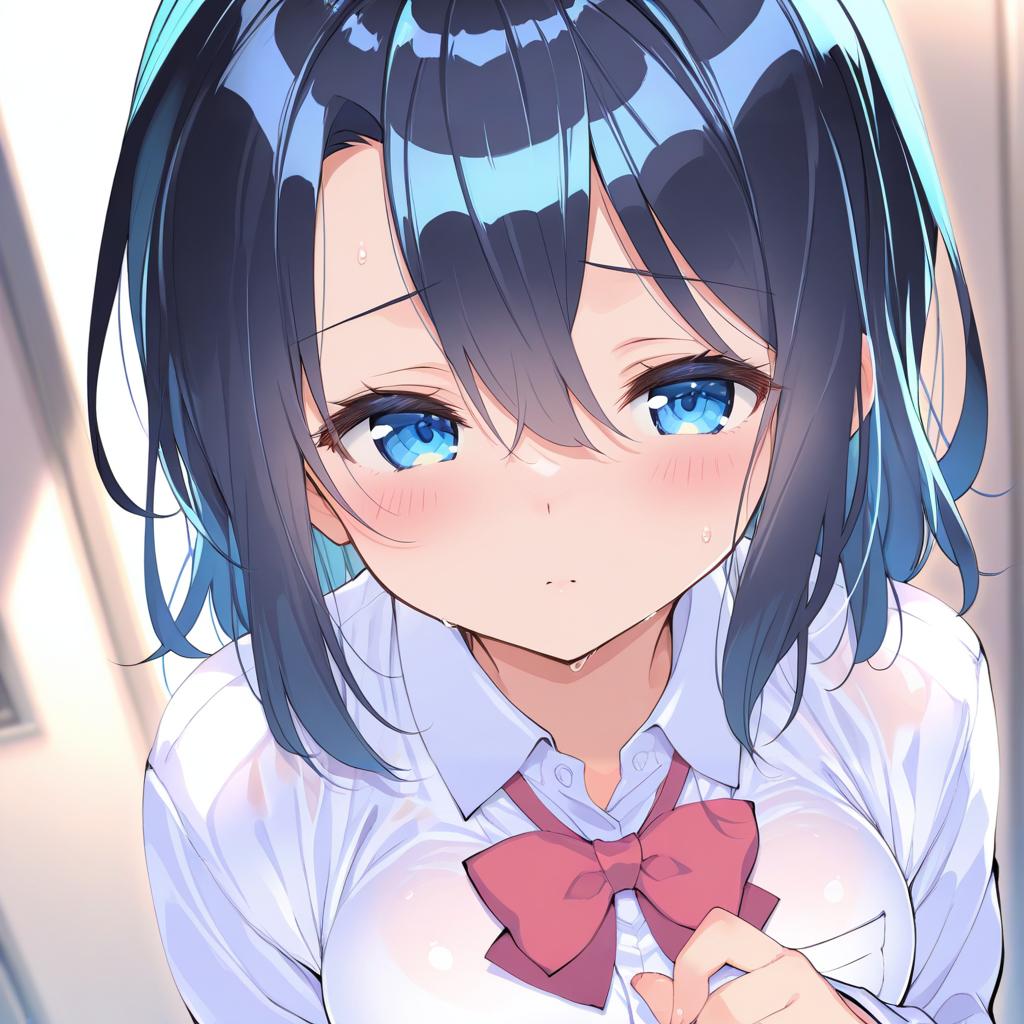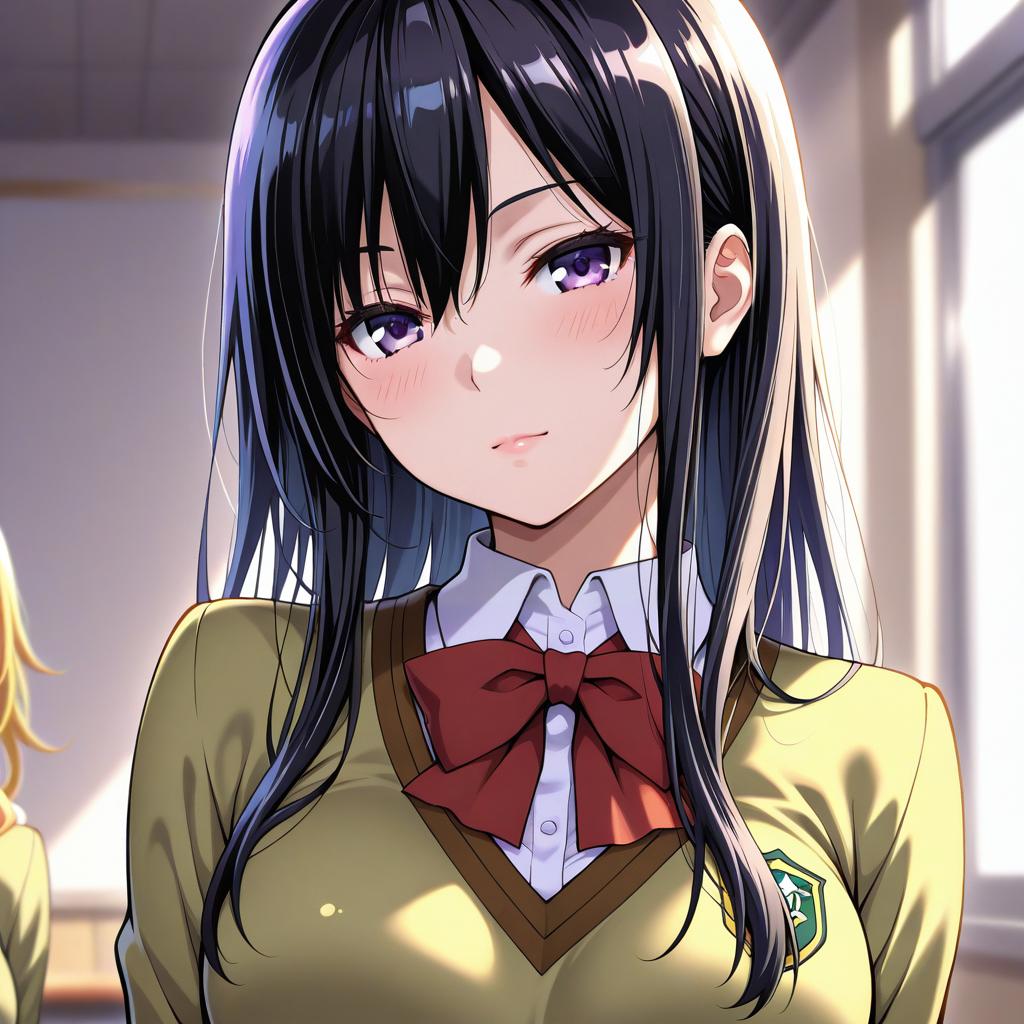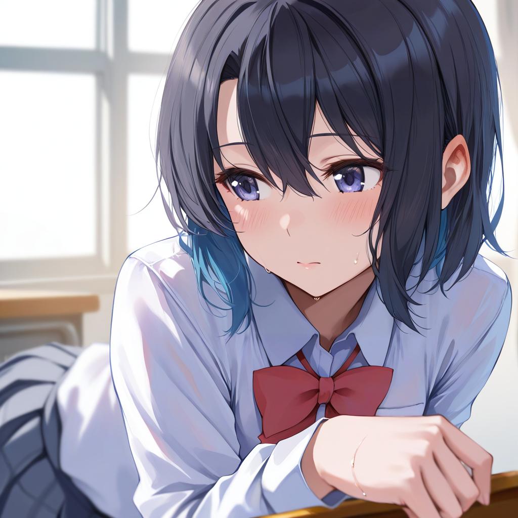 Aiba uiha, nijisanji, 1girl, blue eyes, mole under eye, black hair, long hair, purple hair, hair bow, blue bow, virtual youtuber, virtual youtuber, by artist kouji (campus life), illustrious