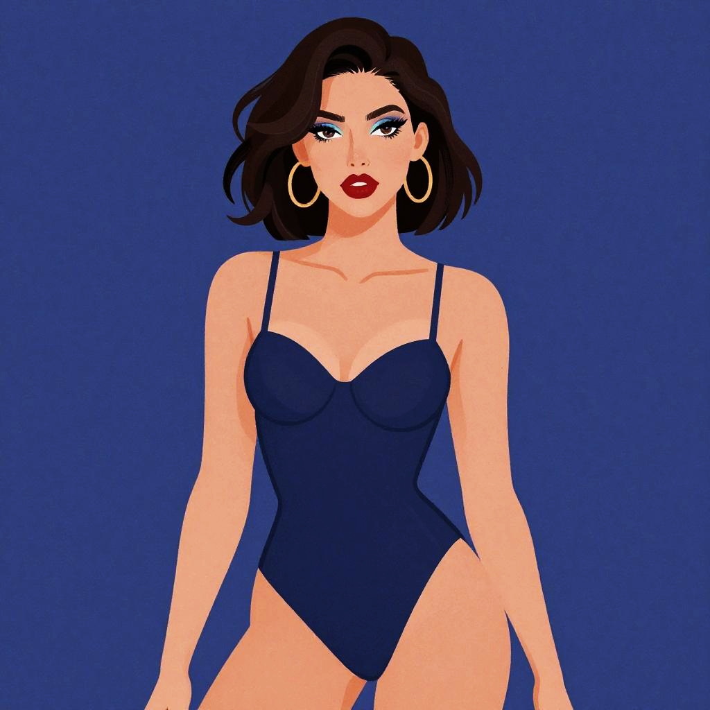 Woman illustration. Cartoon, erotic vibe. Fusion of styles Fauvism style and Synthwave style