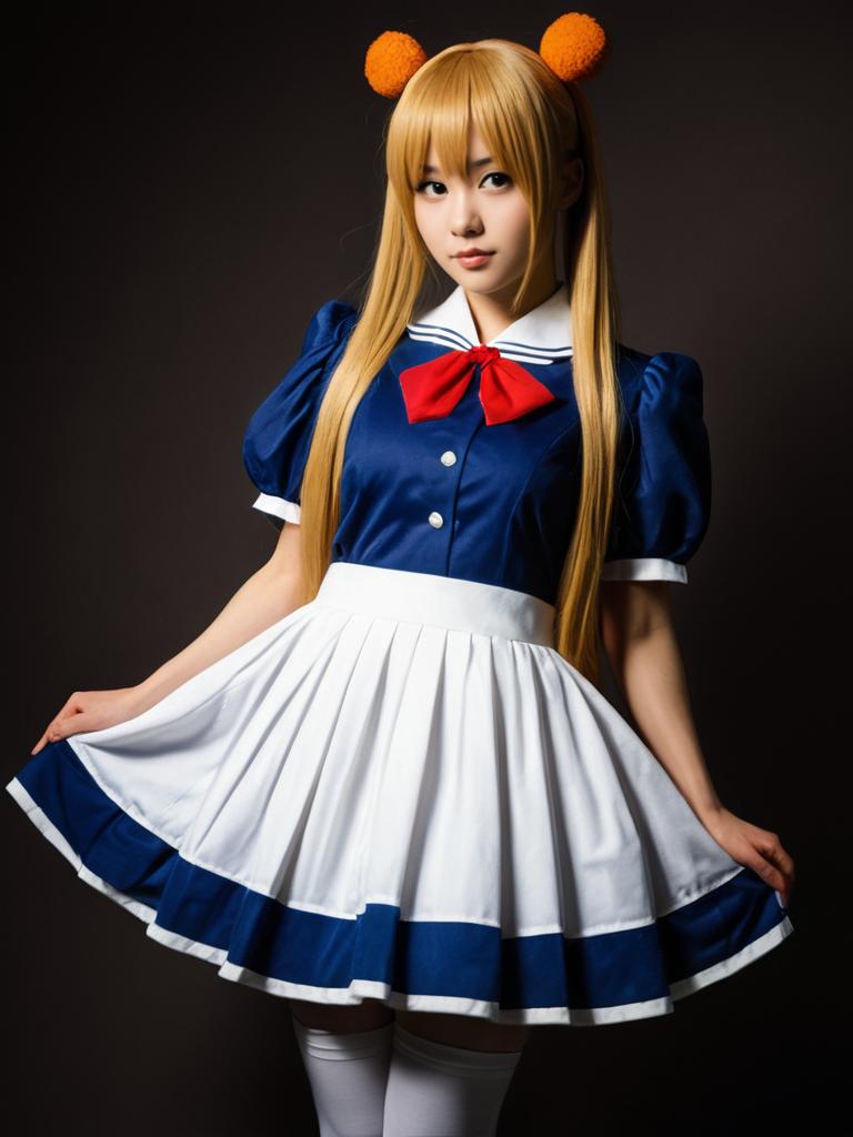 Sexy cosplay woman character wearing Kotori Minami costume. Realistic photo. Jane Doe dressed as Kotori Minami --sref 1388
