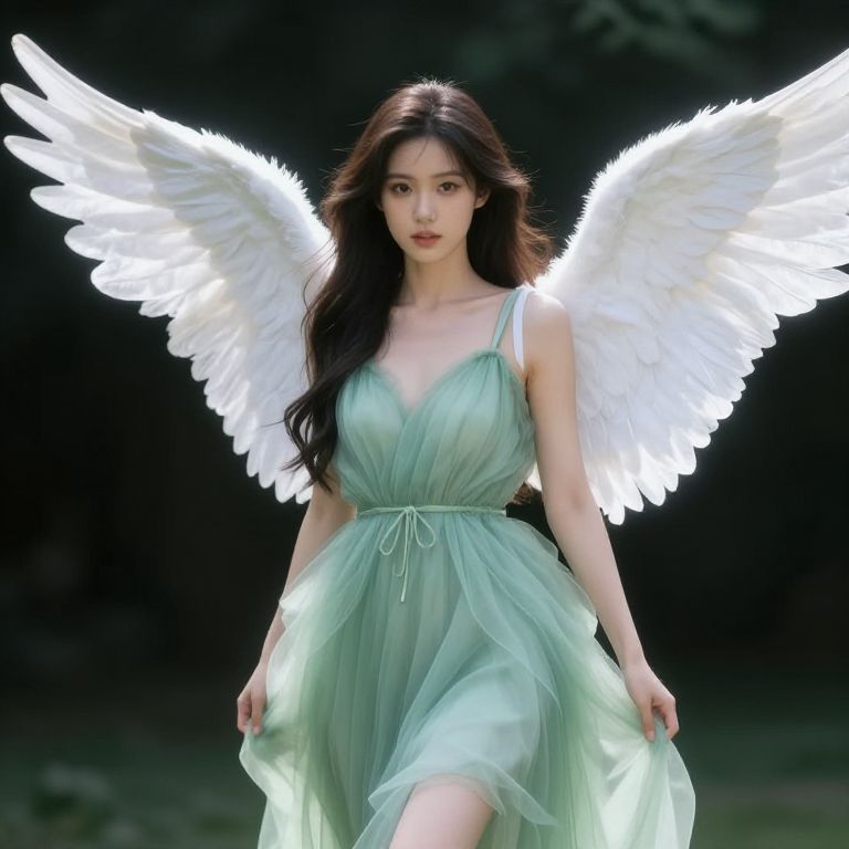 Girl with Wings in Green Dress