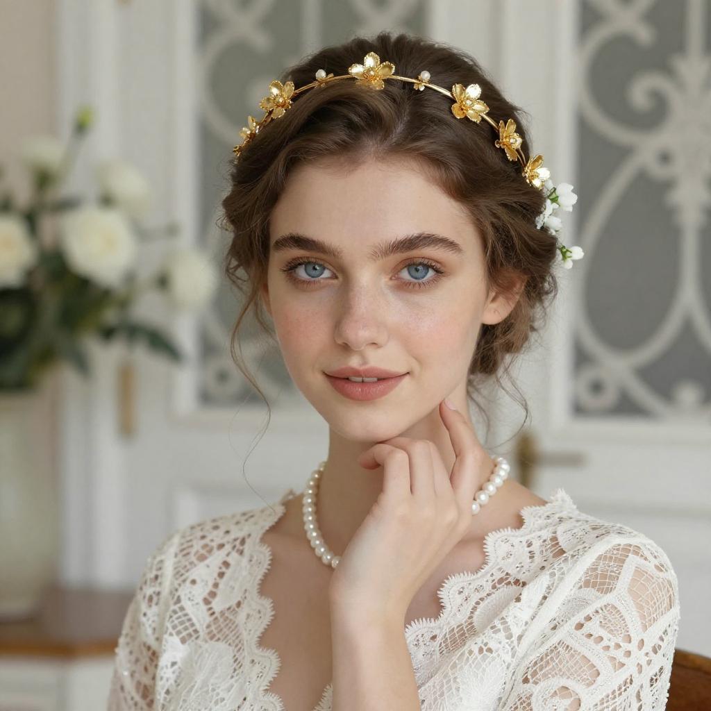 Elegant Woman with Gold Leaf Accessories