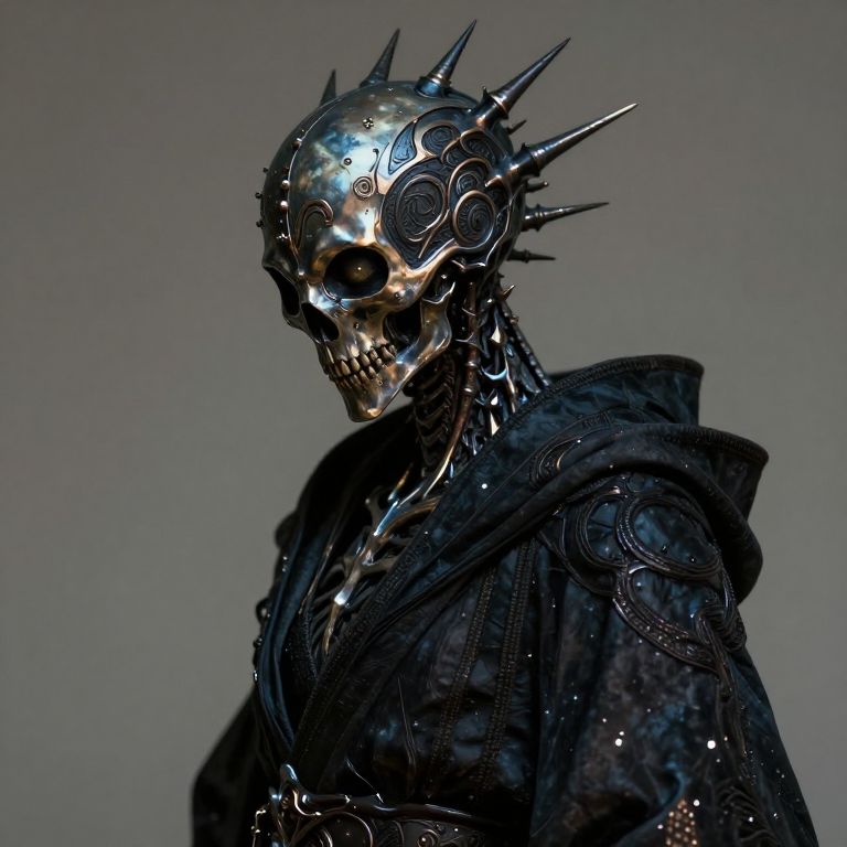 Whimsical Spiked-Head Figure in Library