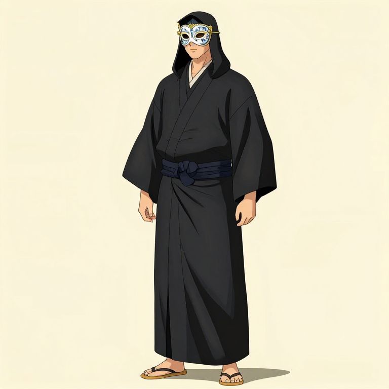 Craig Mullins a tall guy with a black kimono, a hood and and venitian mask full length, by katsuhiro Ôtomo,