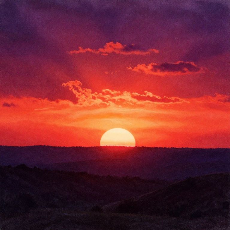 Vibrant Sunset Landscape in Watercolor Pencil