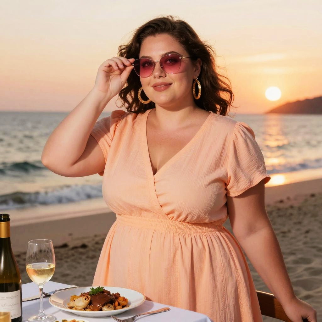 Plus-Size Woman Summer Beach Dinner