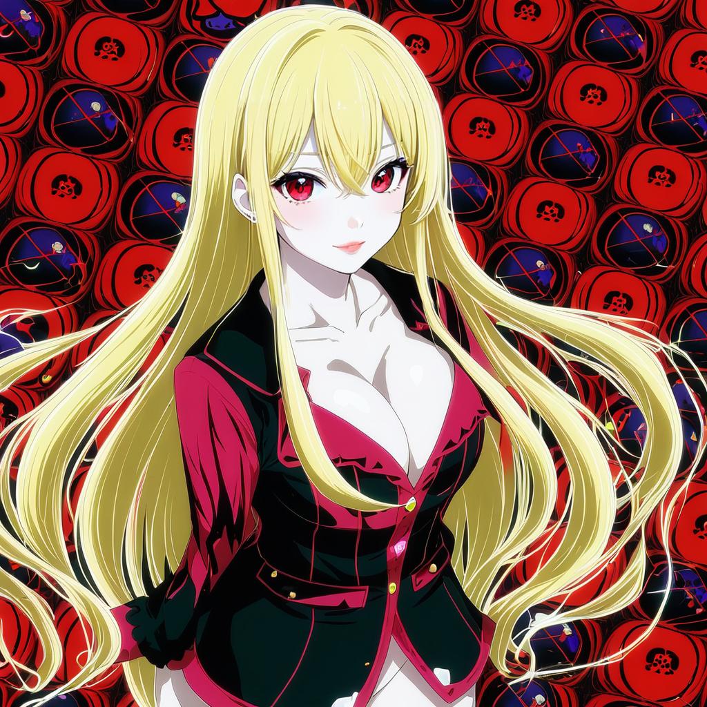 Arakune, blazblue, 1girl, monster, blonde hair, large breasts, by artist idkuroi, anime