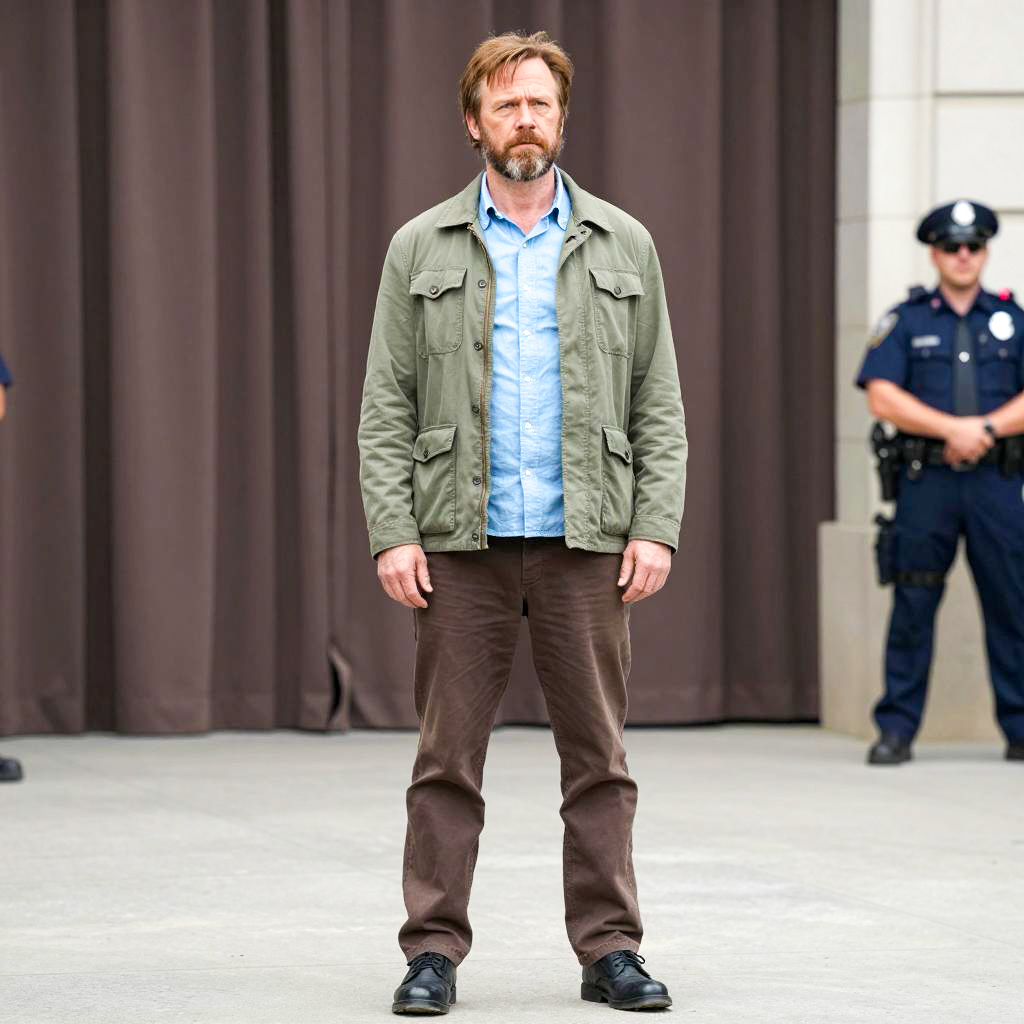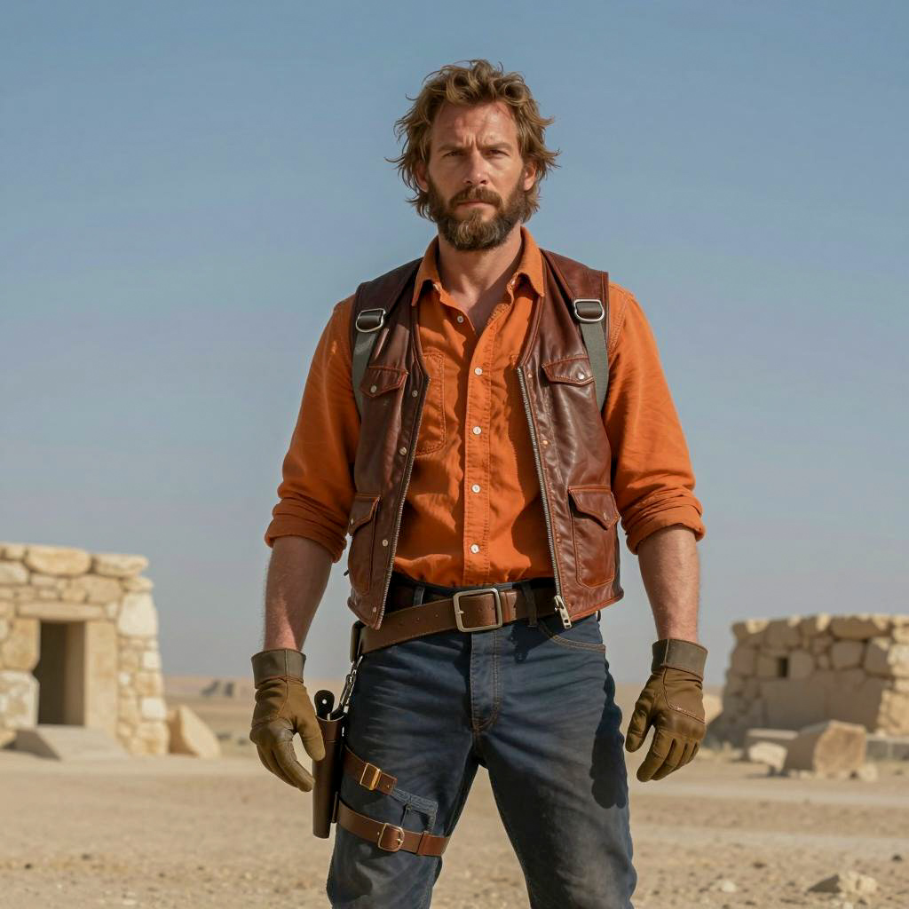 Two men with dirty, blood-stained clothes and visible tattoos work on a steel bridge. The man on the left, with dark skin and short hair, focuses on a wrench. The man on the right, with fair skin and receding hair, points at something below. Metal beams and industrial equipment fill the background. Both men have intense expressions.
