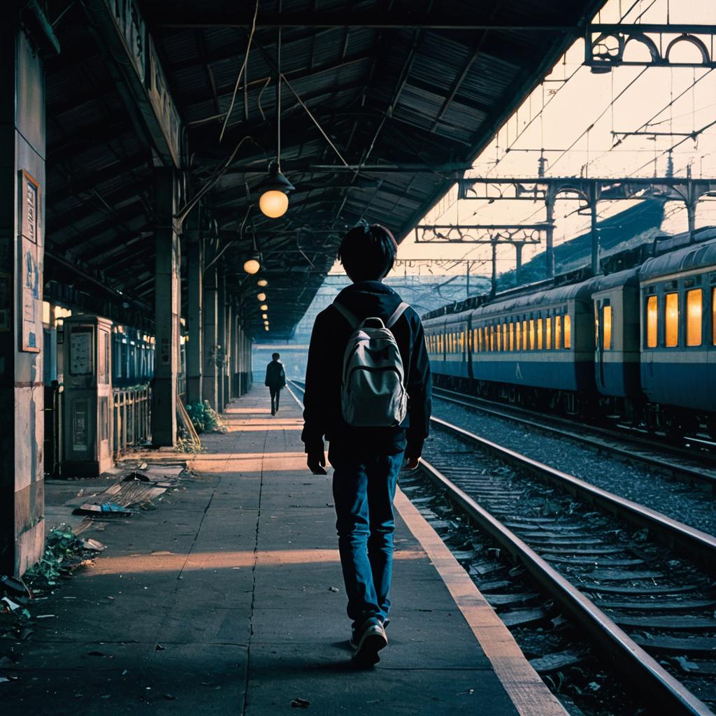 A contemplative middle-aged man, walking through a quiet park surrounded by autumn leaves, with nostalgia, depicted in the introspective and detailed anime style of Inio Asano.