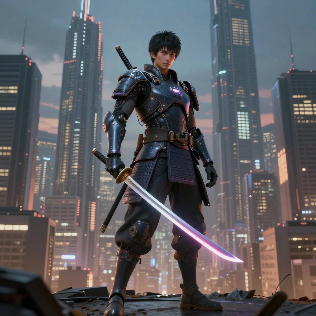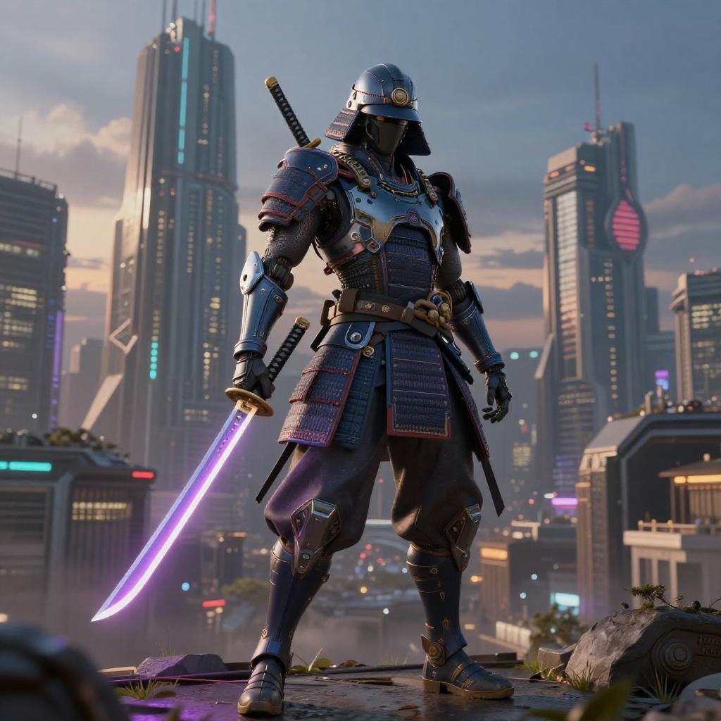 Cyber Samurai in Futuristic Cityscape