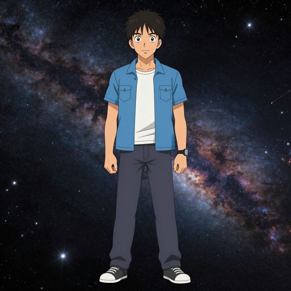 Cartoon Man in Space Background