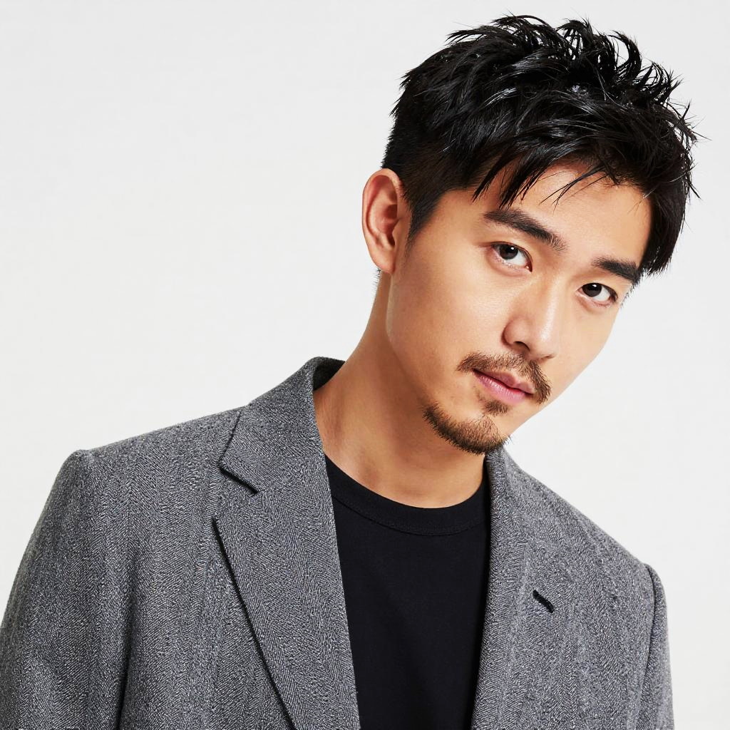 Photograph of an Asian man with medium skin tone, dark brown hair, and a trimmed beard, wearing a dark blazer over a white shirt,