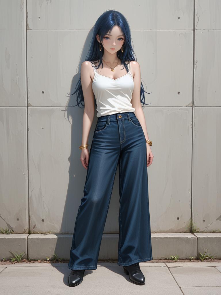1girl, realistic face, full body shot, Woman, casual chic, white ribbed crop top with a high neck and long sleeves, black high-waisted mini skirt with a zipper detail, minimalist silver hoop earrings.