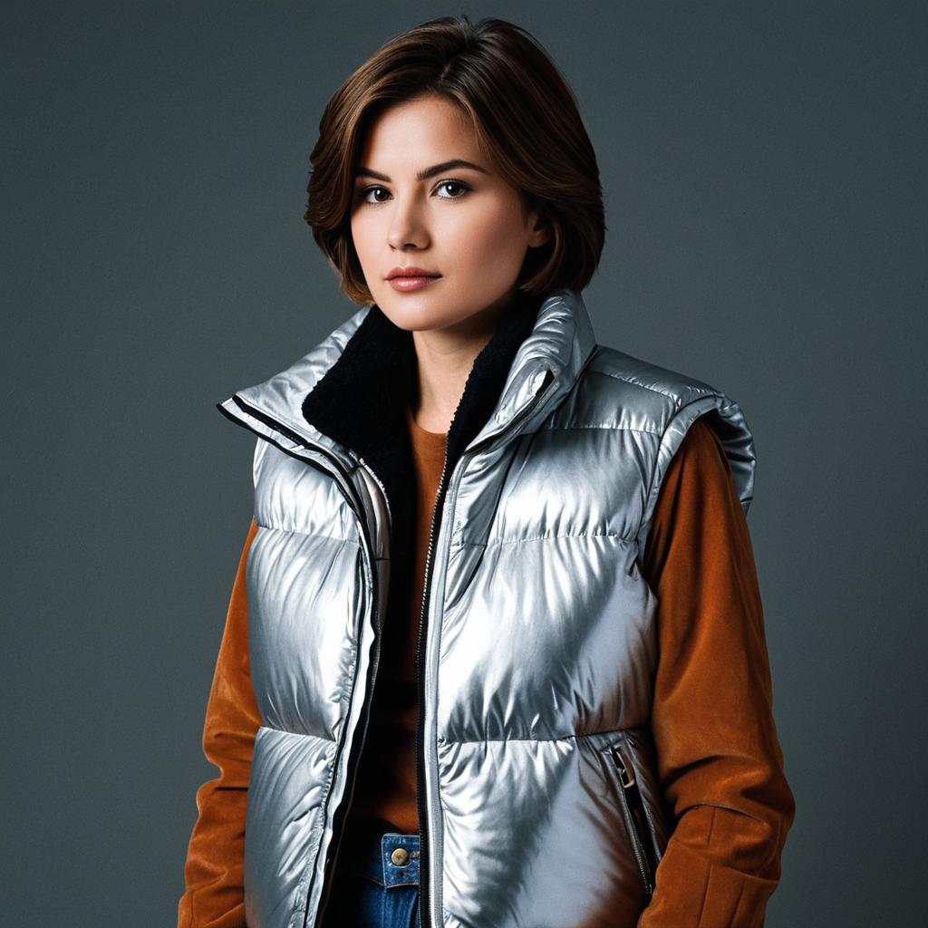 Woman Wearing Winter Puffer Coat with Pink Beanie