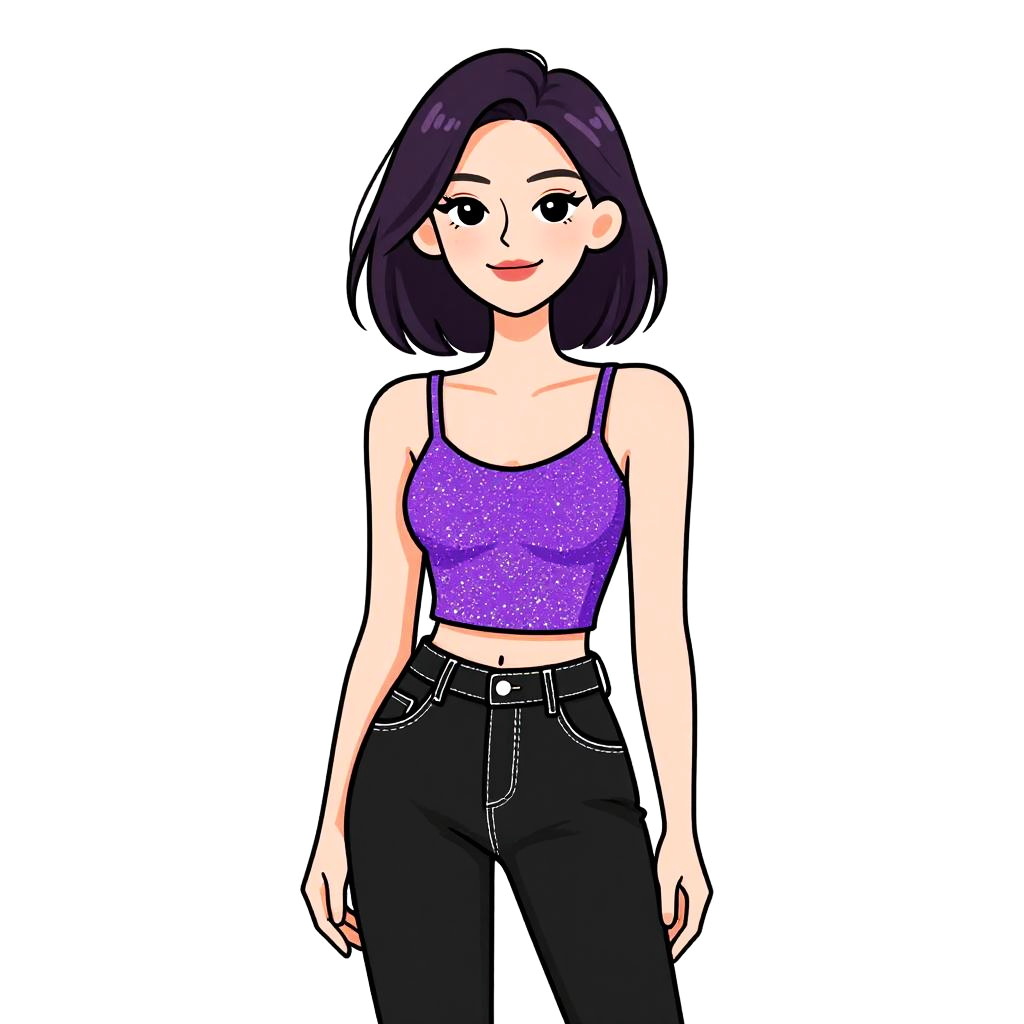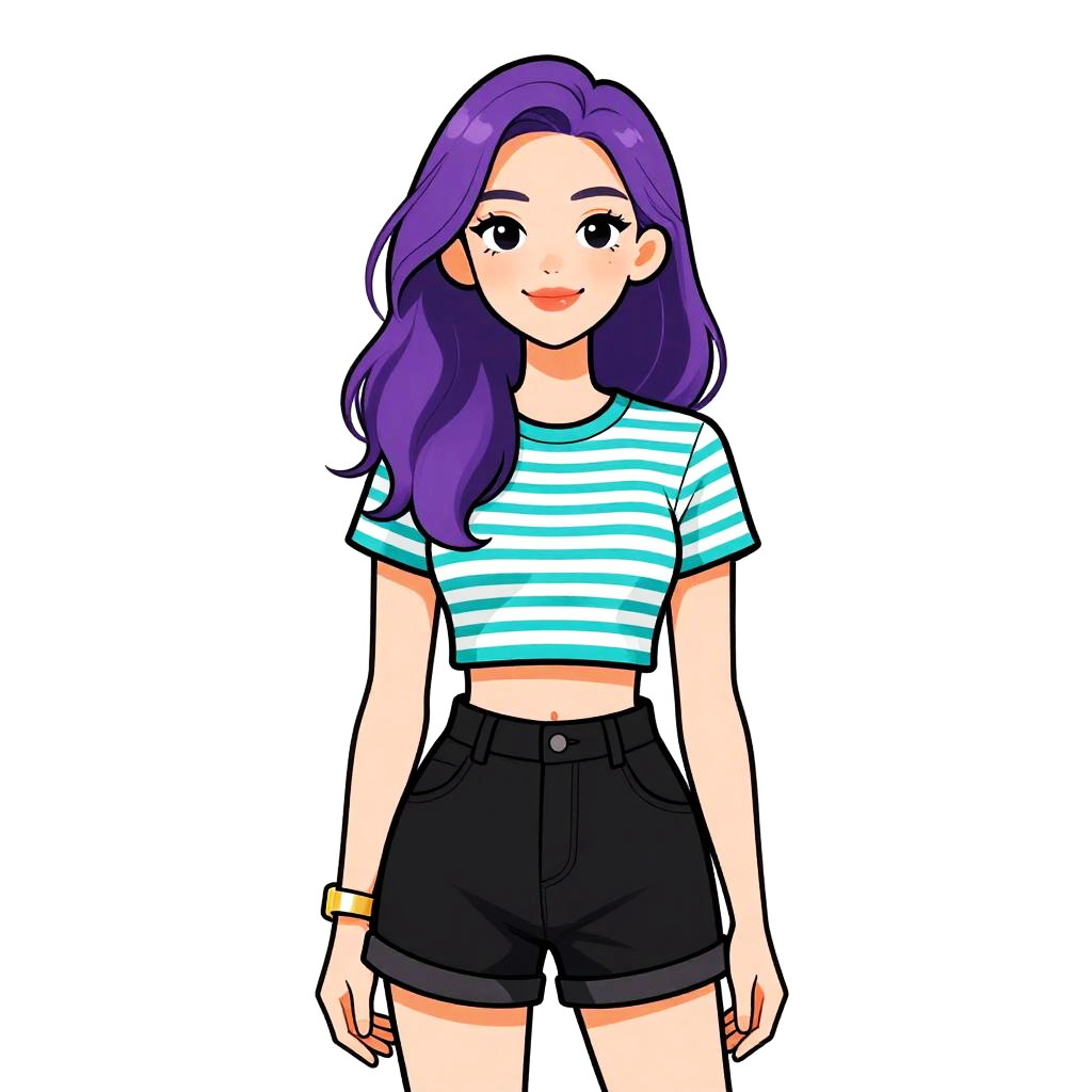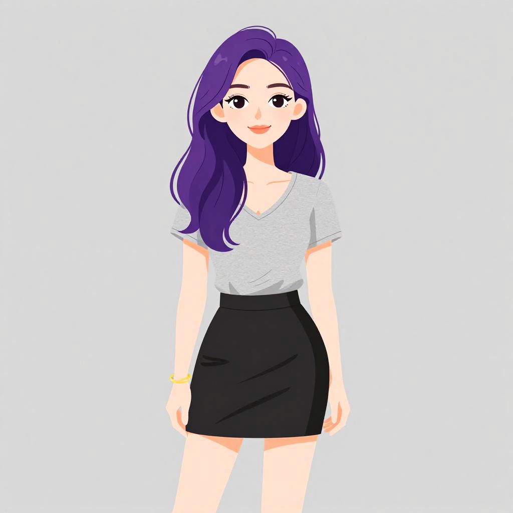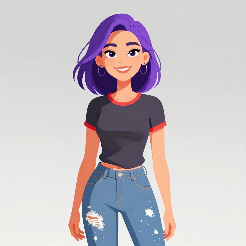 Woman with pretty face and pretty hair. smiling Woman, casual streetwear, heather grey cropped t-shirt with a red Nike logo, rolled-up short sleeves, high-waisted denim shorts with frayed hem and distressed details, light wash, solid grey background. --sref 1467