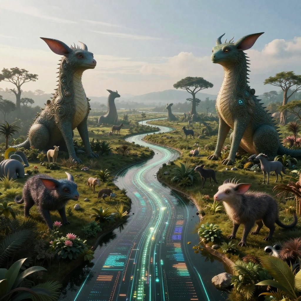 Art AI image generator crafting a dreamlike fantasy scene with mythical creatures and floating islands, soft pastel colors mixed with sharp digital textures, elegant light beams filtering through clouds, rich in detail with a magical, otherworldly feel.