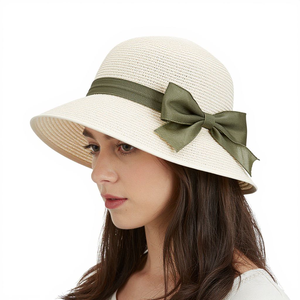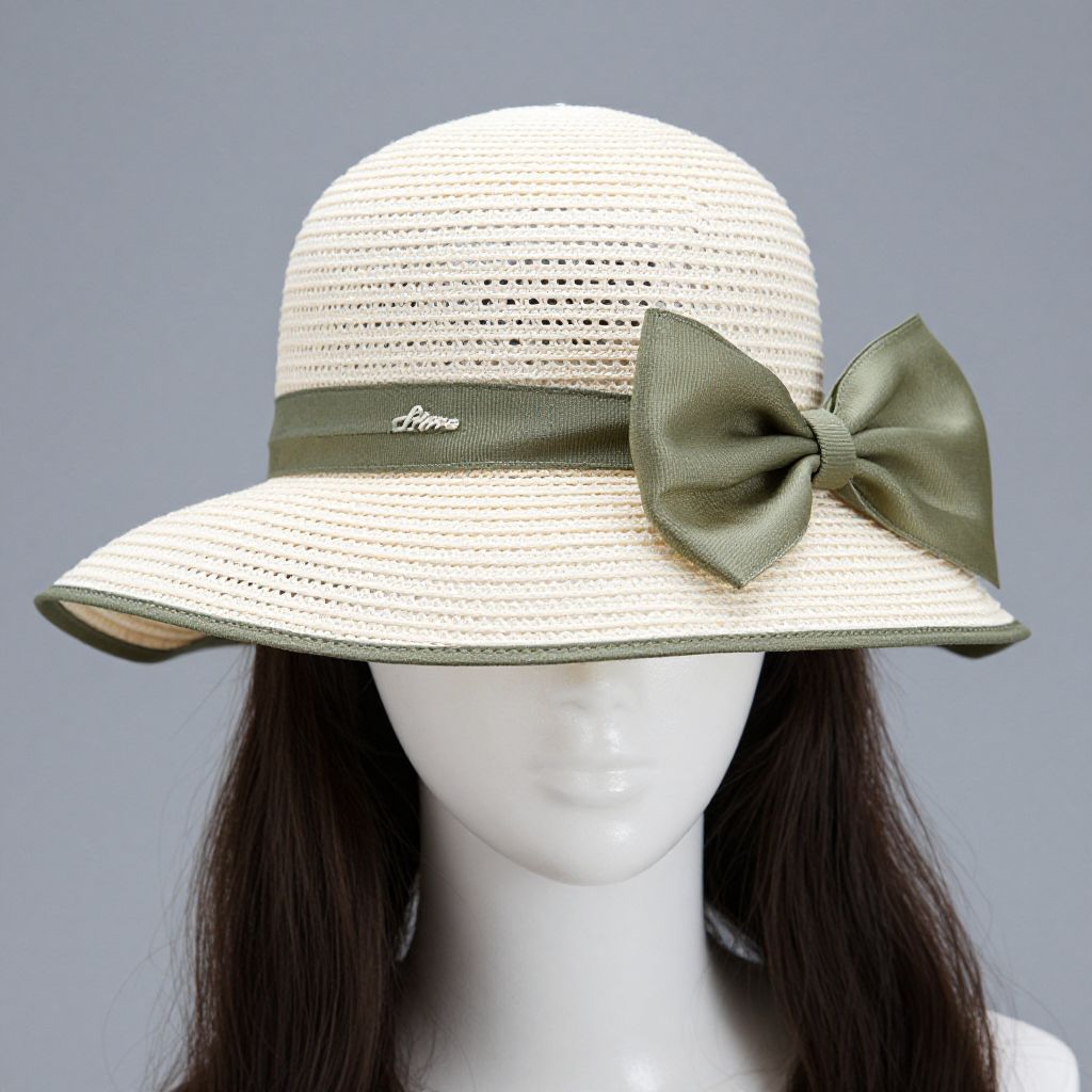 Proppa Toppa PT100 Francis Olive And Ivory Ladies Rain Hat With Bow Decoration On Woman