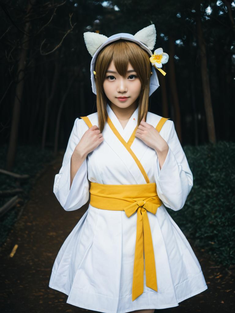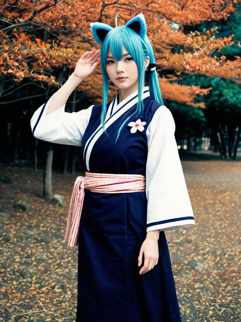 Sexy cosplay woman character wearing Kanata Konoe costume. Realistic photo. Jane Doe dressed as Kanata Konoe --sref 1390