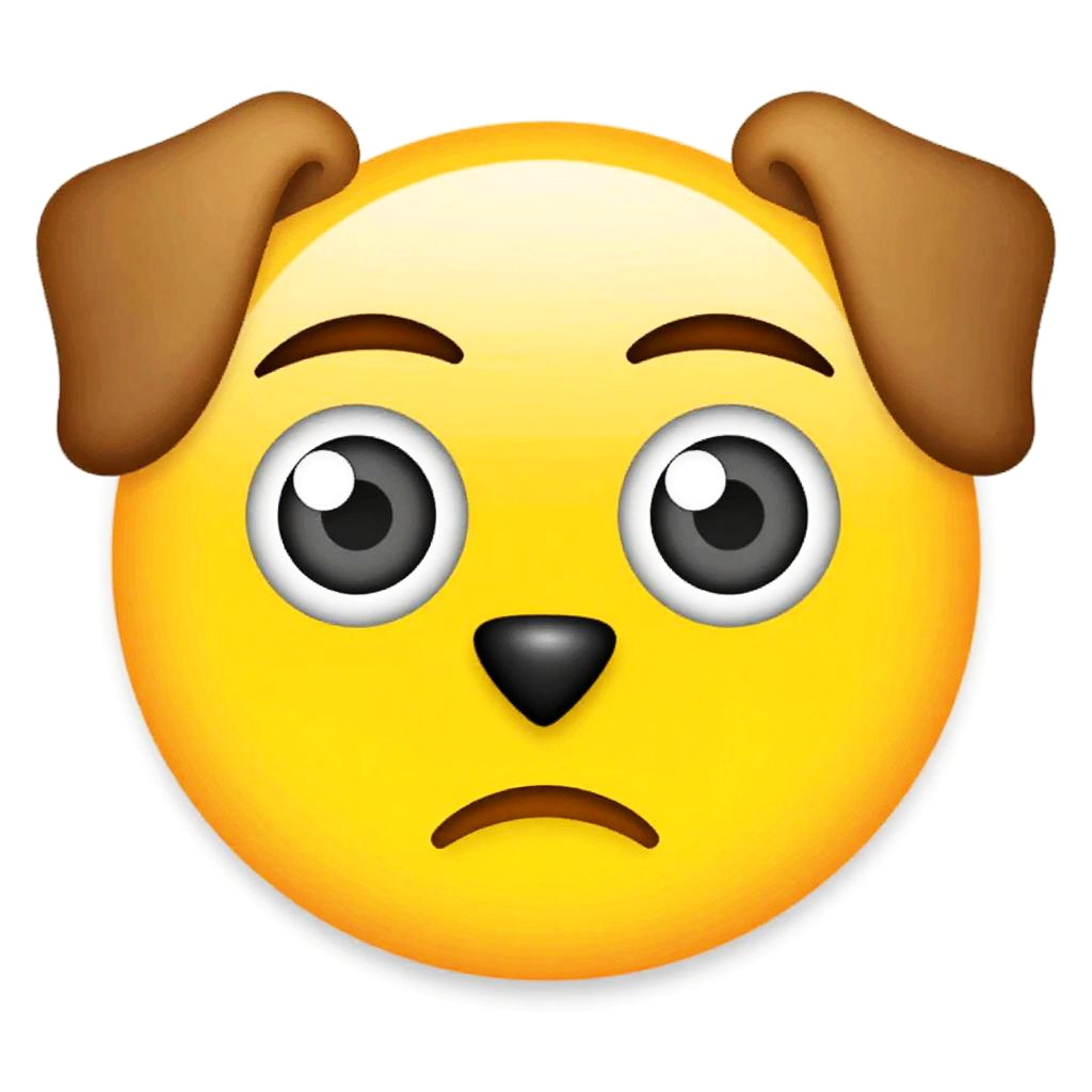 Make an emoji from a picture, transforming a pet dog’s adorable expression into a cute and simplified cartoon face, emphasizing large eyes and a small nose, bright color palette, flat design with soft shadows, suitable for messaging apps.
